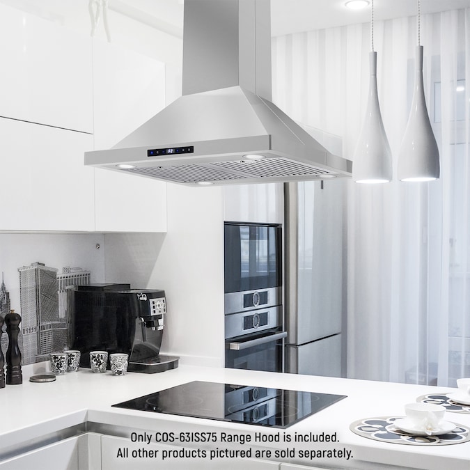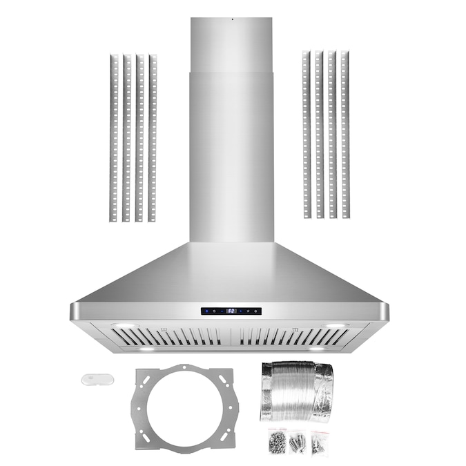 - Common Range Hood Size: 30 inch; Vent Type: Ducted; Brand: Cosmo; Mounting Type: Island Range Hood; Duct Type: 6-in round; Maximum Air Volume (CFM): 380 CFM; Appliance Color/Finish: Stainless Steel; 2 Year Limited Warranty