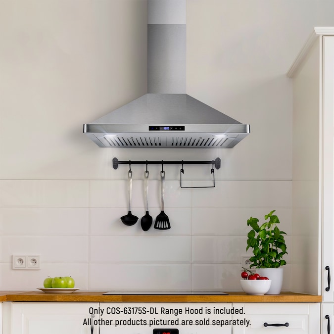 - Common Range Hood Size: 30 inch; Vent Type: Ductless; Brand: Cosmo; Mounting Type: Wall-Mounted Range Hood; Duct Type: 6-in round; Maximum Air Volume (CFM): 380 CFM; Appliance Color/Finish: Stainless Steel; 2 Year Limited Warranty
