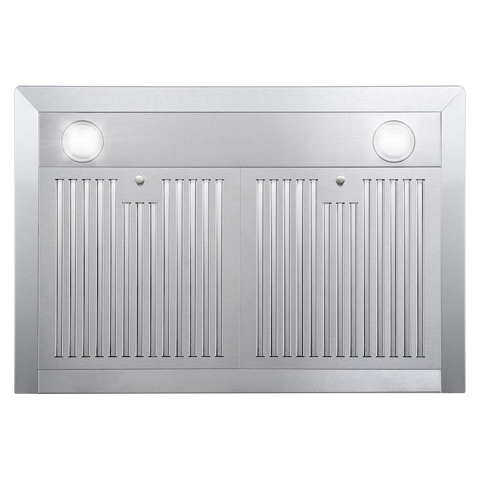 - Stainless steel range hood equipped with two energy efficient LED cooktop lights for your convenience and a 2 year limited warranty
