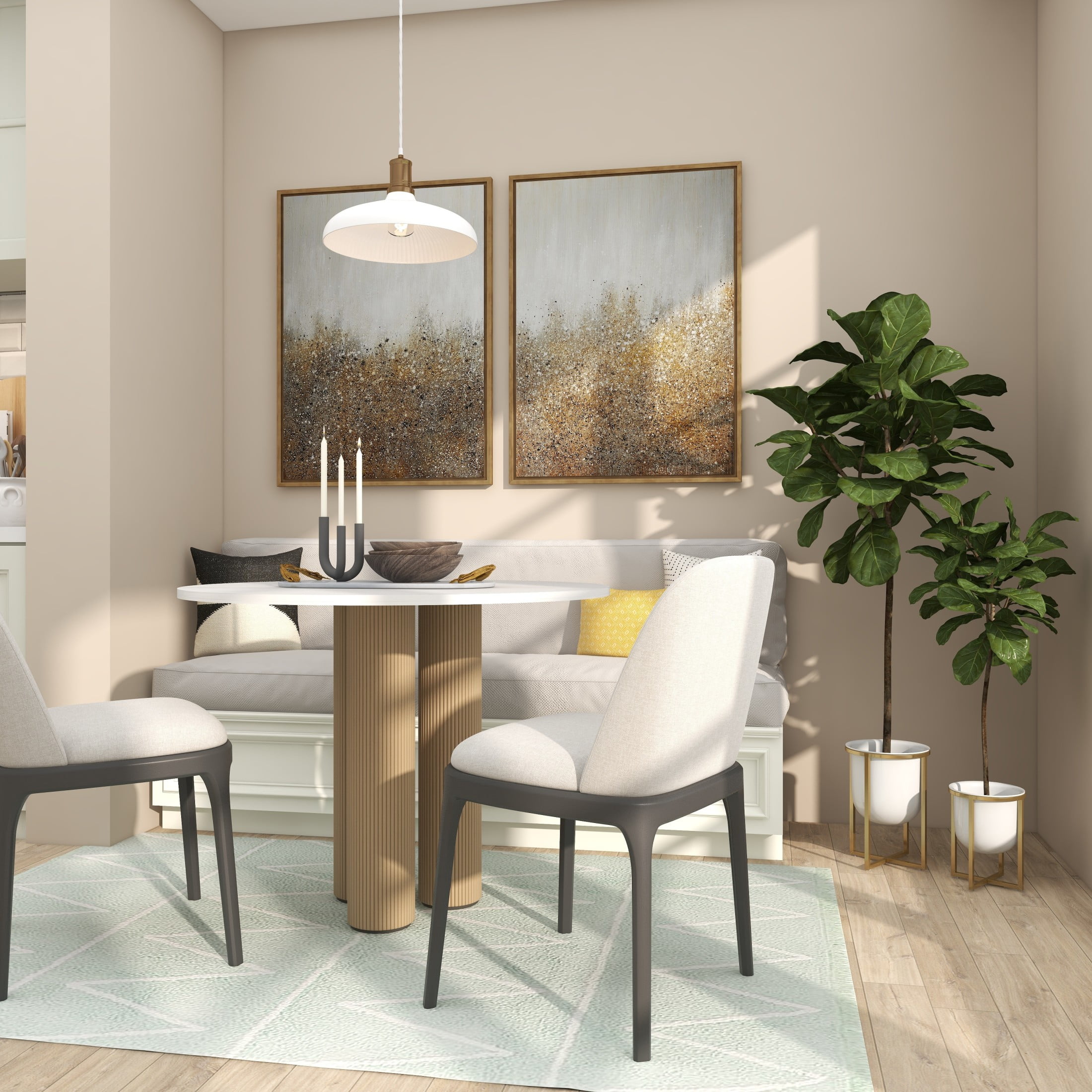 Embrace artistic expression with a style that highlights bold designs with sleek lines, neutral elements, and a minimalist aesthetic Crafted from high-quality metal, these white indoor outdoor planter set are durable and designed to withstand the test of time Round plant pot set possess a sleek, contemporary design with a polished white finish and gold stand that adds a refreshing aesthetic to any space A standout feature of this metal set of 2 planters is the removable stand, which allows for versatility in display options Each white metal planter measures 8.95L x 8.9W x 12.45H , 7.15L x 7.15W x 9.55H inches, and collectively weighs 5.05 lbs The round shape of these polished white flower pots for outdoor plants enhances their modern appeal, making them an ideal choice for those who appreciate minimalist design Wipe clean with a dry cloth Contemporary set of 2 planters for indoor plants has been meticulously crafted with attention to detail, with the metal being welded and polished to perfection to achieve its stunning look Contemporary style CosmoLiving by Cosmopolitan 12″, 10″H Dome White Metal Planter with Gold X-Shaped Stands (2 Count) makes a perfect addition to any home