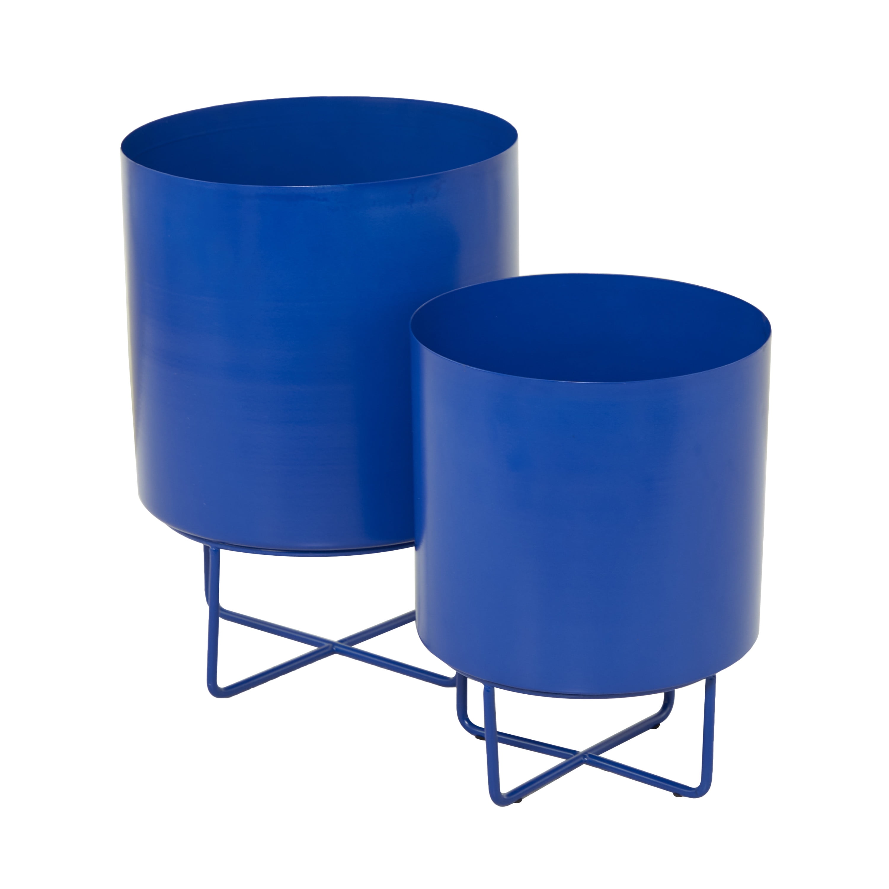 CosmoLiving by Cosmopolitan 16″, 13″H Blue Metal Planter (2 Count)