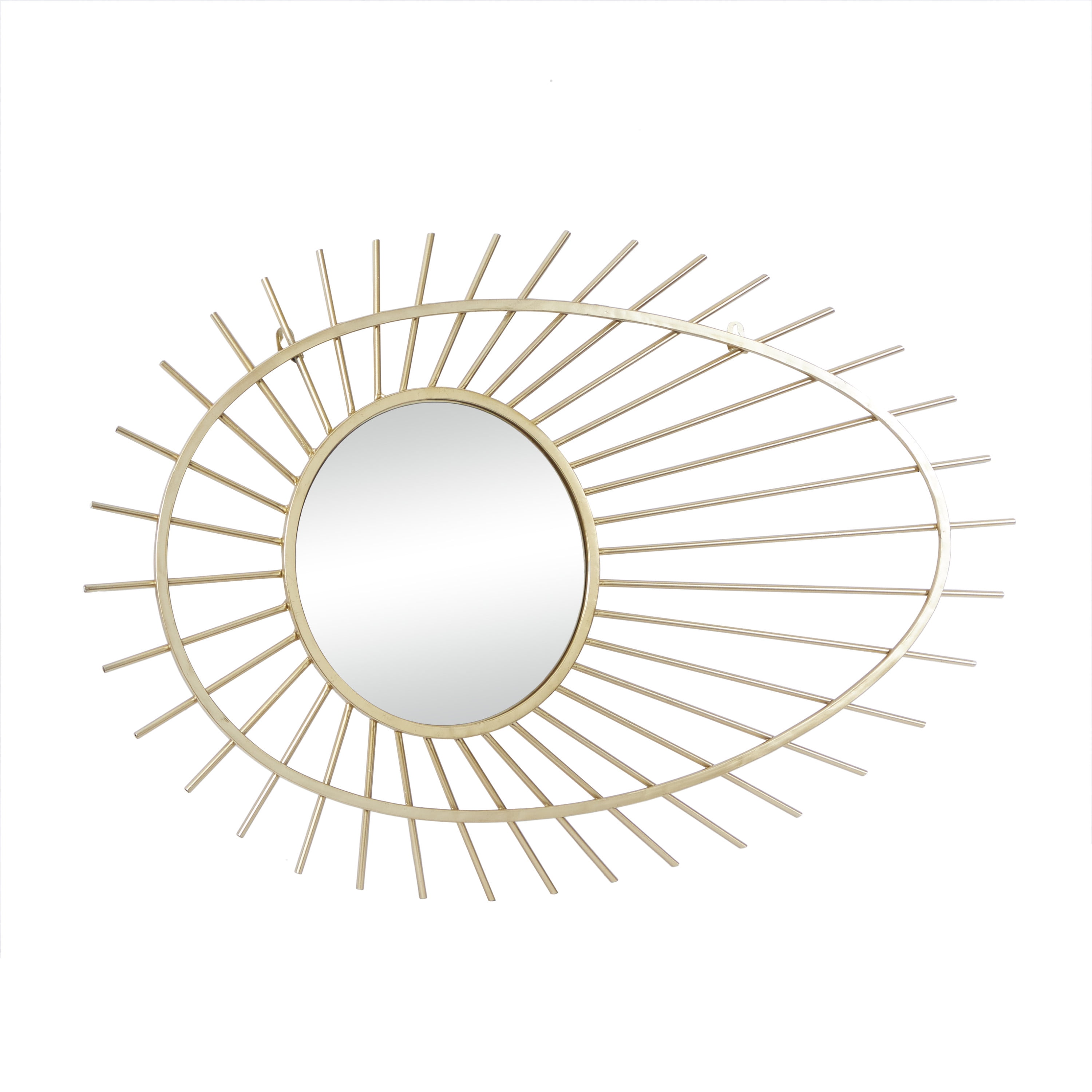 Embrace artistic expression with a style that highlights bold designs with sleek lines, neutral elements, and a minimalist aesthetic This round gold wall mirror is made of sturdy iron, wood, and mirror materials This wall mirror features a stunning metallic gold frame Features a unique comet shaped design where the mirror is the rock and the gold frame is the vapor trail Each item measures 21.60L x 1.35W x 34.40H inches, and collectively weighs 3.74 lbs This metal wall mirror features a unique oval sunburst frame design and a round-shaped mirror Wipe clean with a dry cloth Welded metal frame with attached reflective mirror Contemporary style CosmoLiving by Cosmopolitan 22″ x 34″ Gold Handmade Starburst Wall Mirror makes a perfect addition to any home