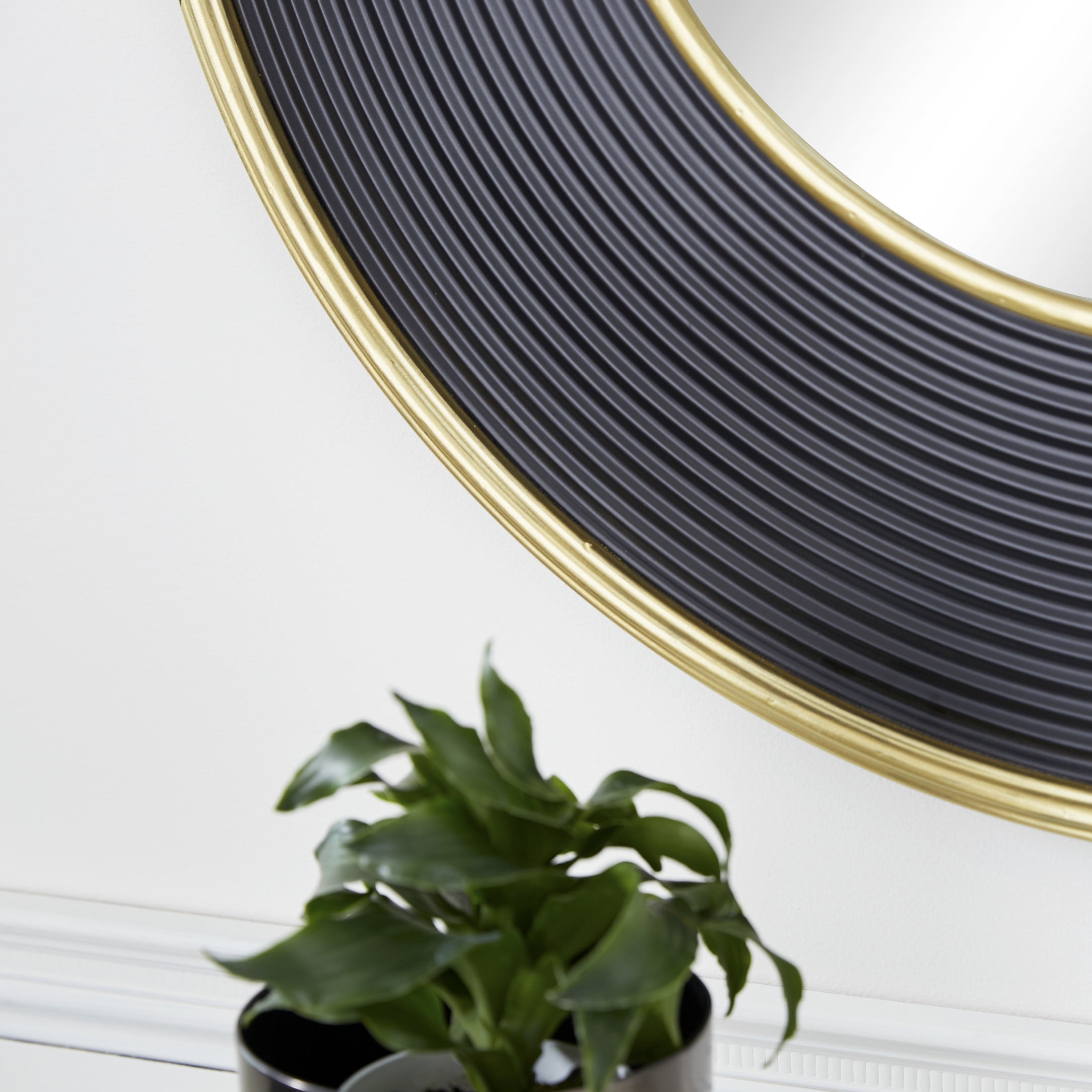 CosmoLiving by Cosmopolitan 35″ x 35″ Black Ribbed Wall Mirror with Gold Edges