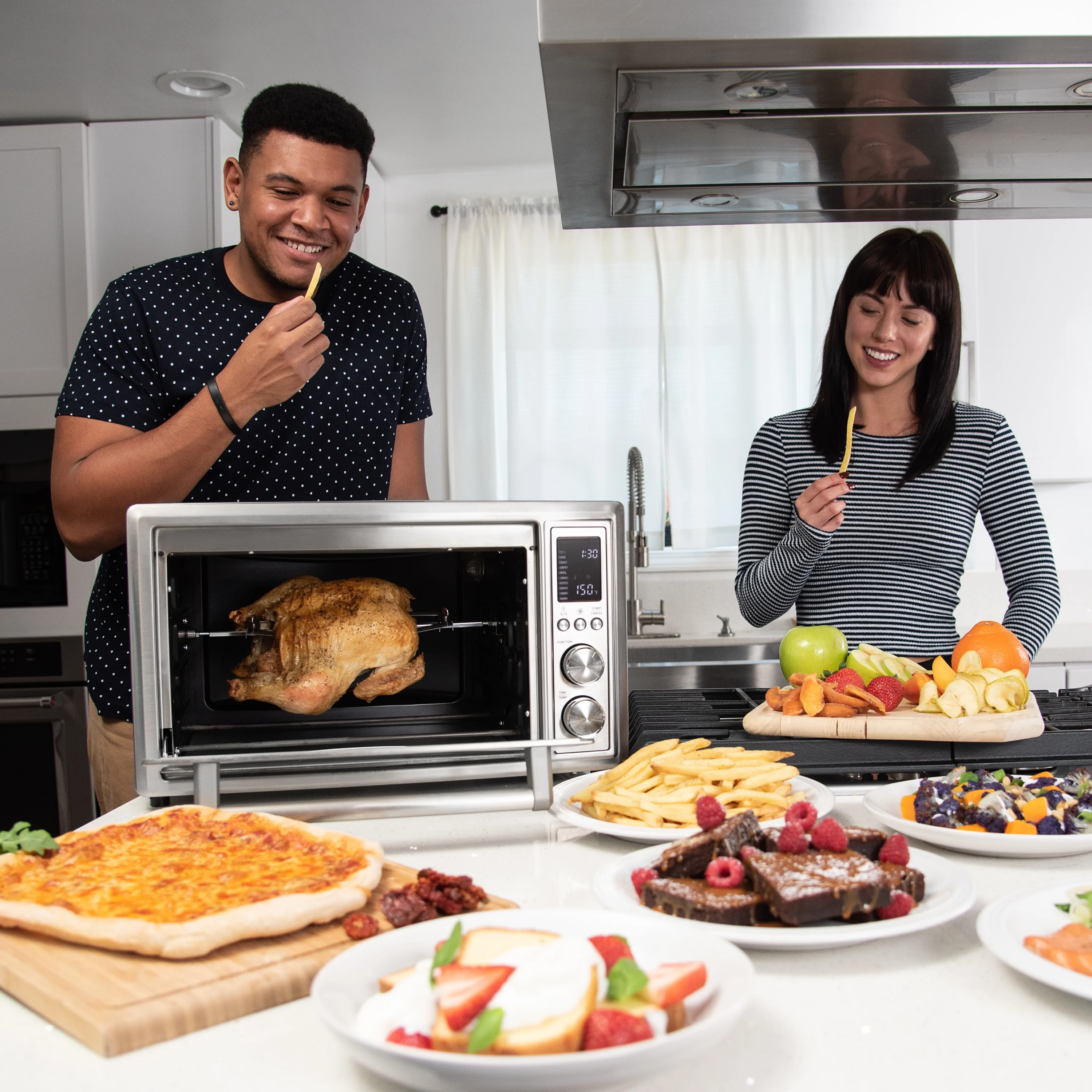 Cosori Smart Air Fryer Toaster Oven, Large 32-Quart, Stainless Steel, Silver Use up to 85% less oil Smart features with free VeSync app: Voice control, 100+ online recipes, step-by-step instructions, monitor cooking process 6 included accessories Made of Nonstick Stainless Steel Accessories: crumb tray, fry basket, food tray, wire rack, rotisserie fork set, rotisserie handle, recipe book, user manual. Temperature range: 80F-450F Time Range: 0-24 hrs User friendly: LED Digital Display, Control Knobs, Adjustable Temperature, Quick and Easy Cleanup, Nonstick interior, Dishwasher safe food tray 32 Quart Capacity New, CTO-R301S-SUSW Large online Cosori Users Community