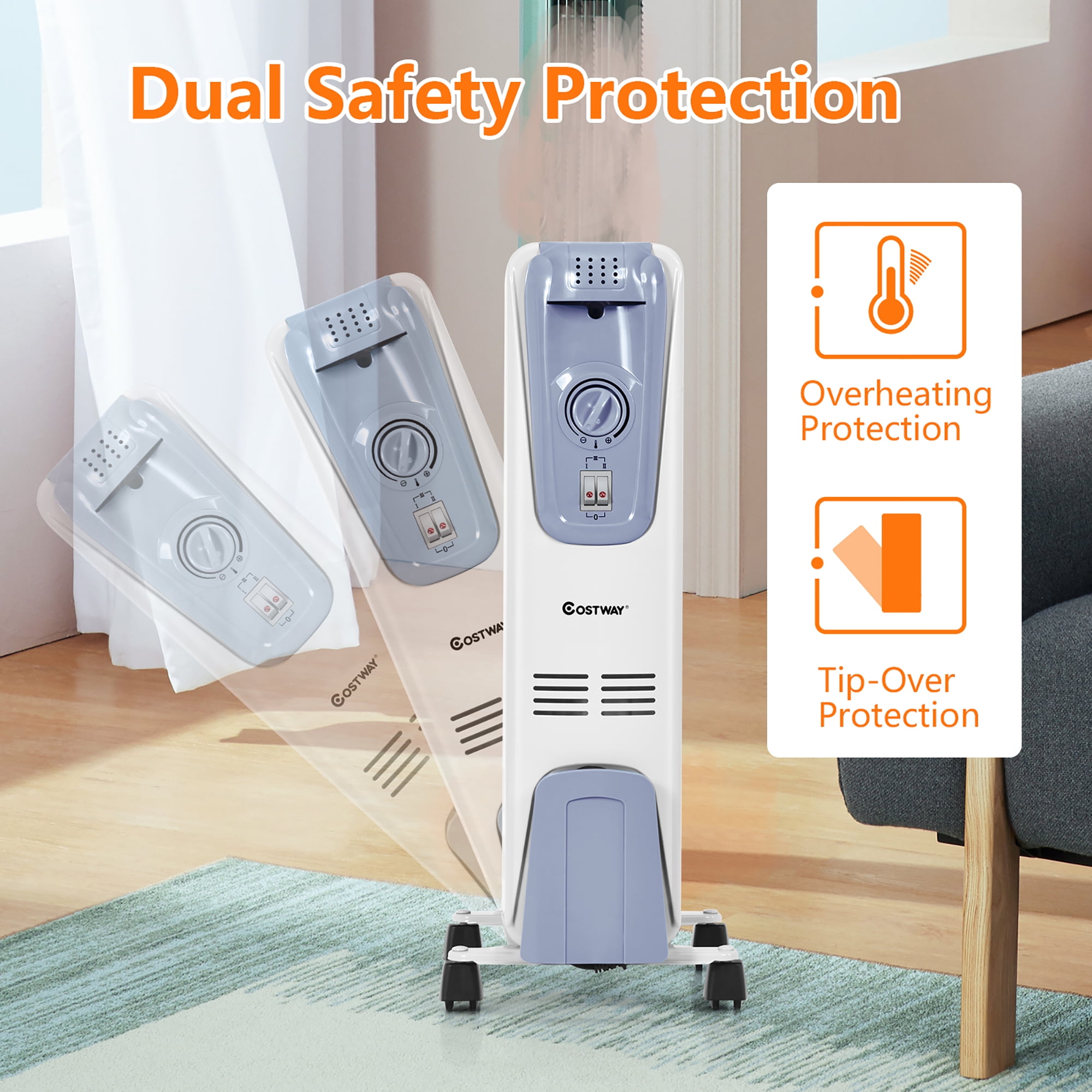 Costway 1500W Electric Oil Filled Radiator Space Heater 7-Fin Thermostat Room Radiant