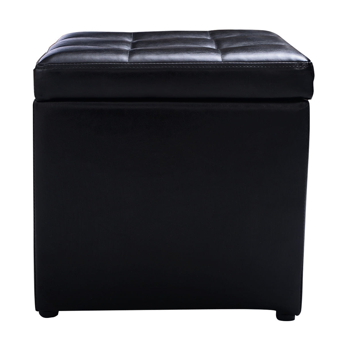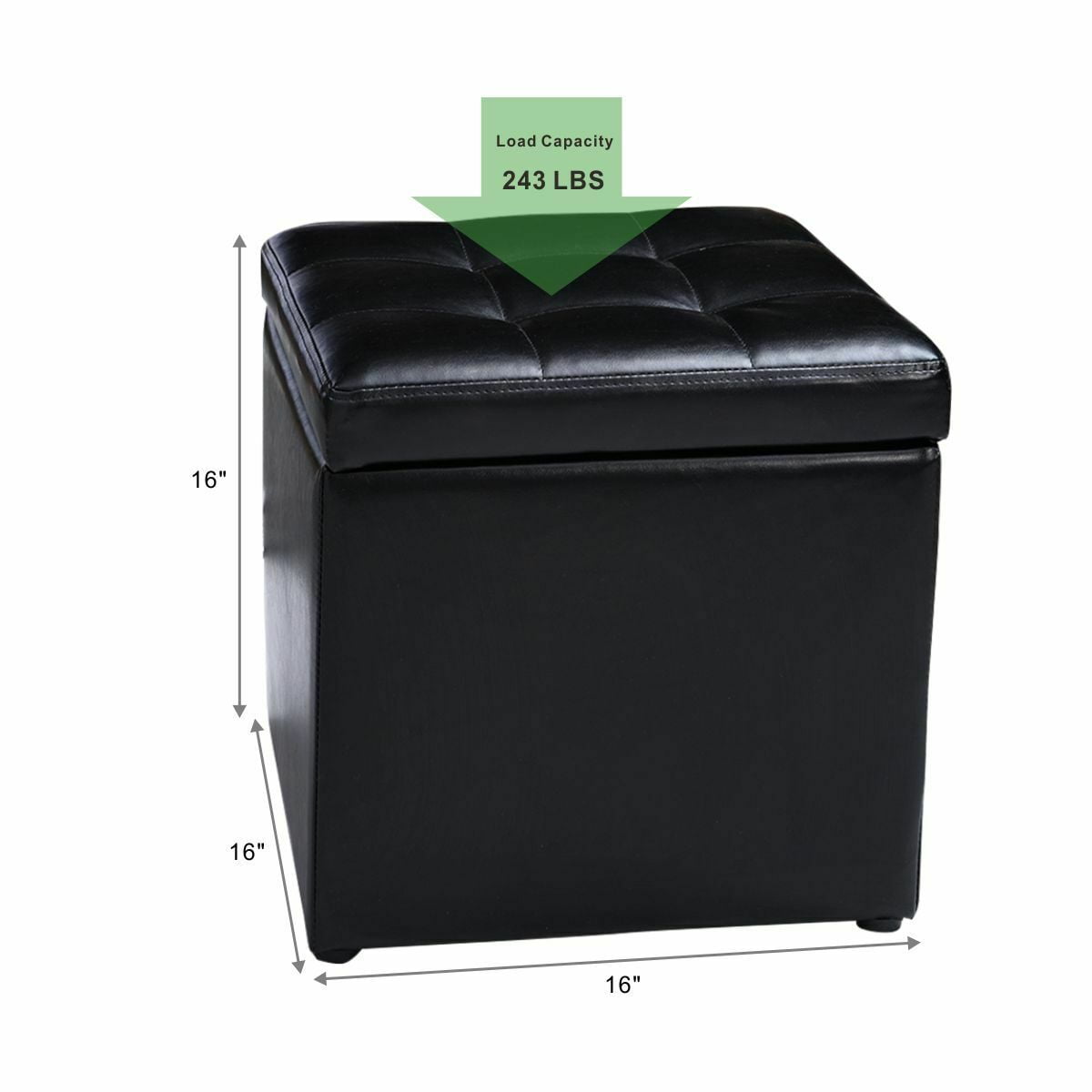Simple cube Faux Leather Ottoman Pouffe Storage Box Functional design with Hinge Top Cushioned top seat for delicate and comfortable seat Ideal for storing and organizing your toys, blanket, books and daily accessories, etc Size of Cube:16” x 16” x 16”(L x W x H)