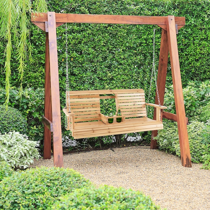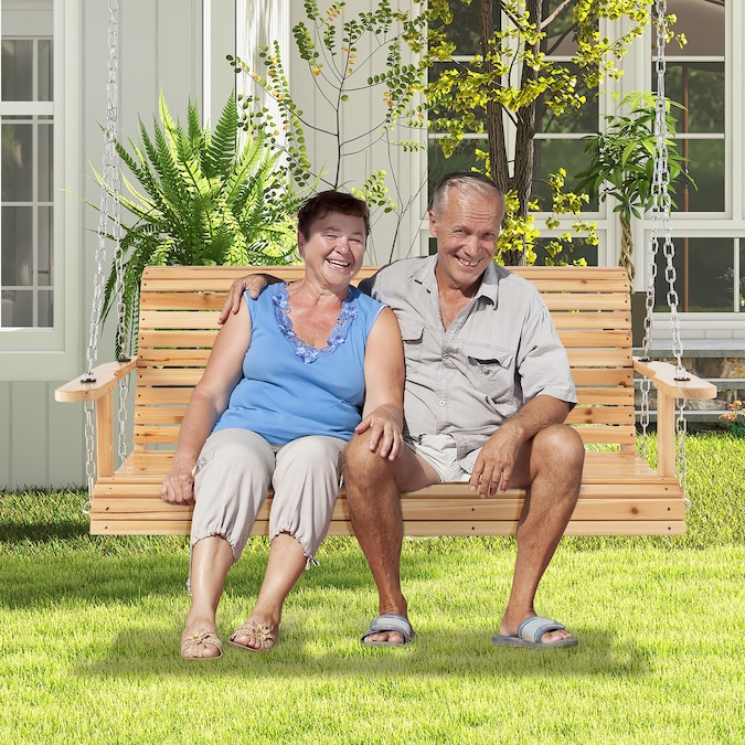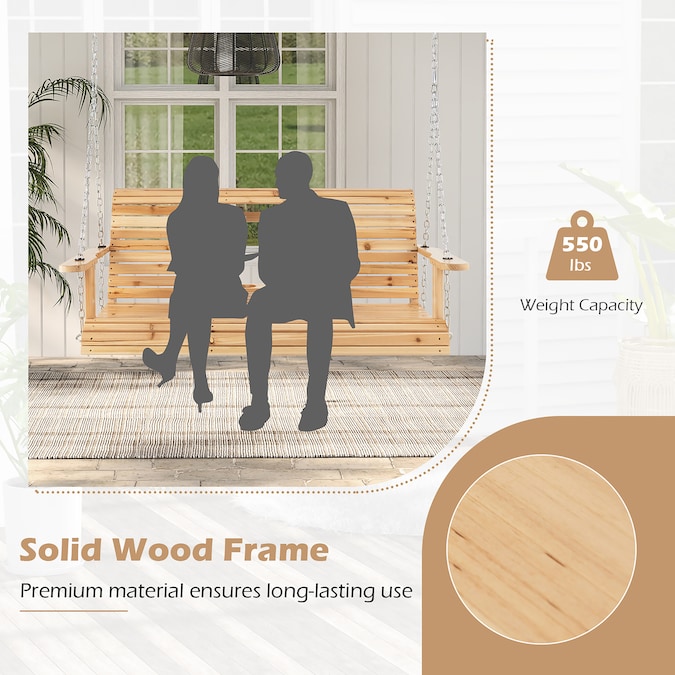 The swing bench with wide seat is available for 2 people to sit together, and the curved seat fits well with your body curve. Apart from that, the high backrest and ergonomic armrests offer extra comfort. Made of well-selected fir wood, the swing bench features higher stability and durability for long-lasting service.Moreover, 2 sturdy metal chains with rustproof finish ensure a safe and gentle swing experience. Equipped with a folding cup holder for convenient use, you can keep your daily items within reach. This 2-seat porch swing bench will be an eye-catcher in both indoor and outdoor places.
