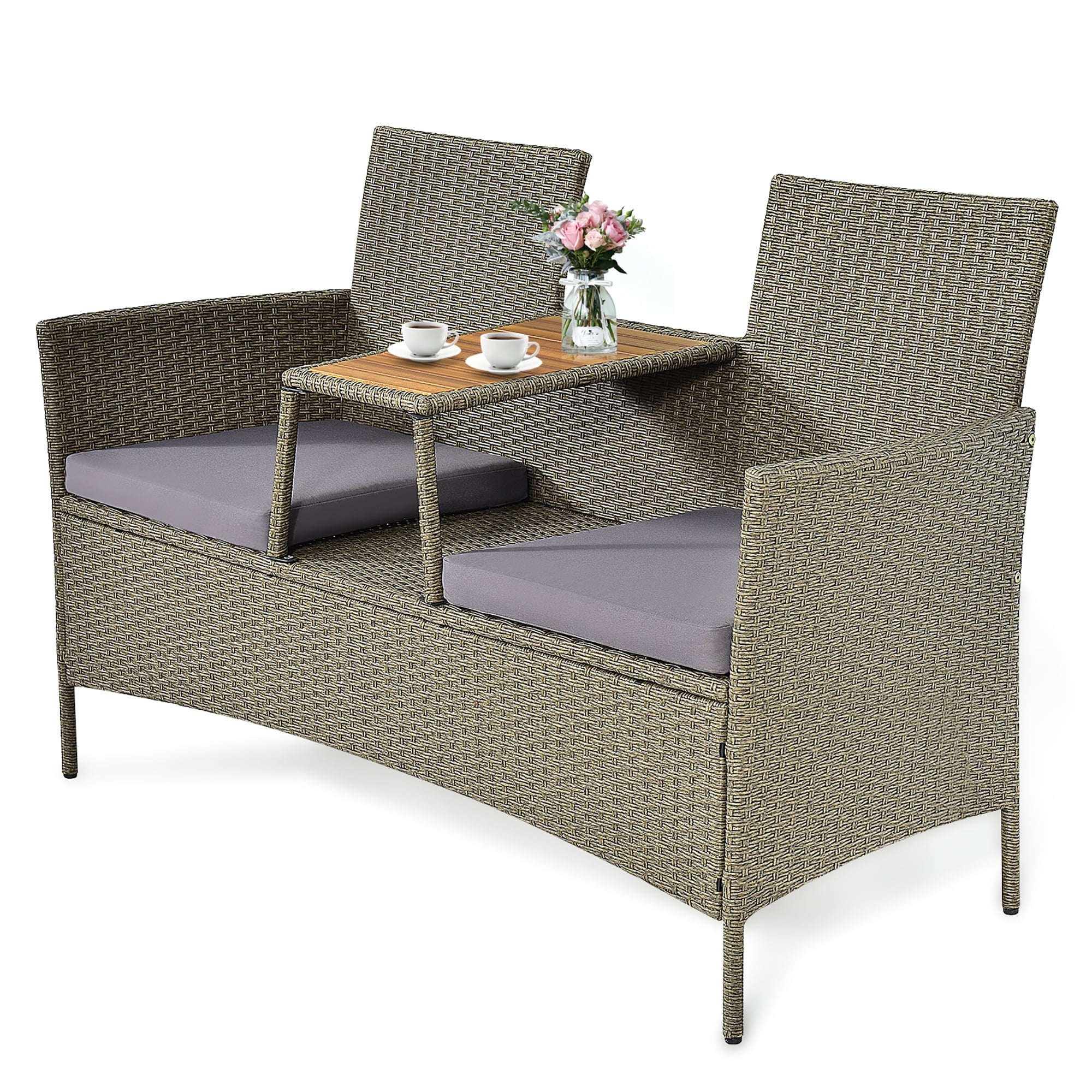 Costway 2-Person Patio Rattan Conversation Furniture Set Loveseat Coffee Table