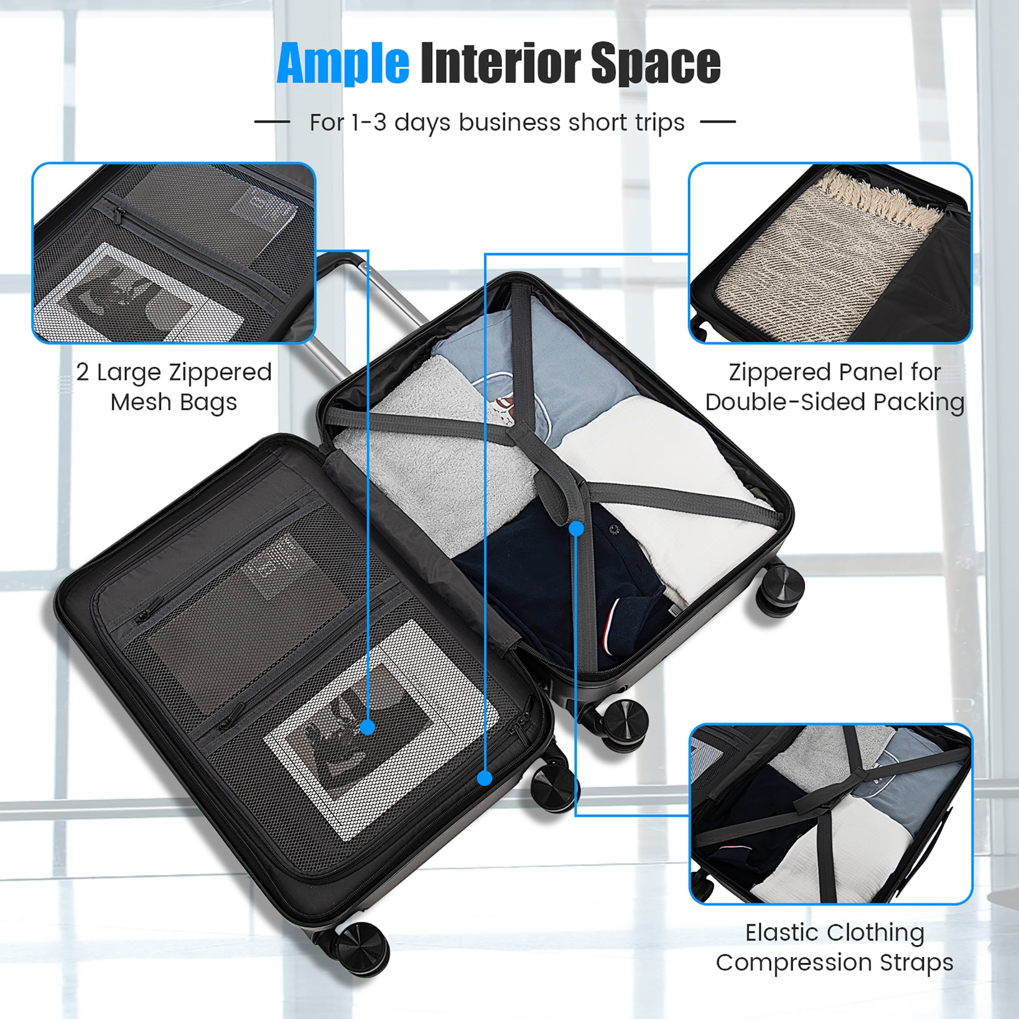 Costway 20” Carry-on PC Hardside Suitcase TSA Lock w/ Front Pocket & USB Port Black