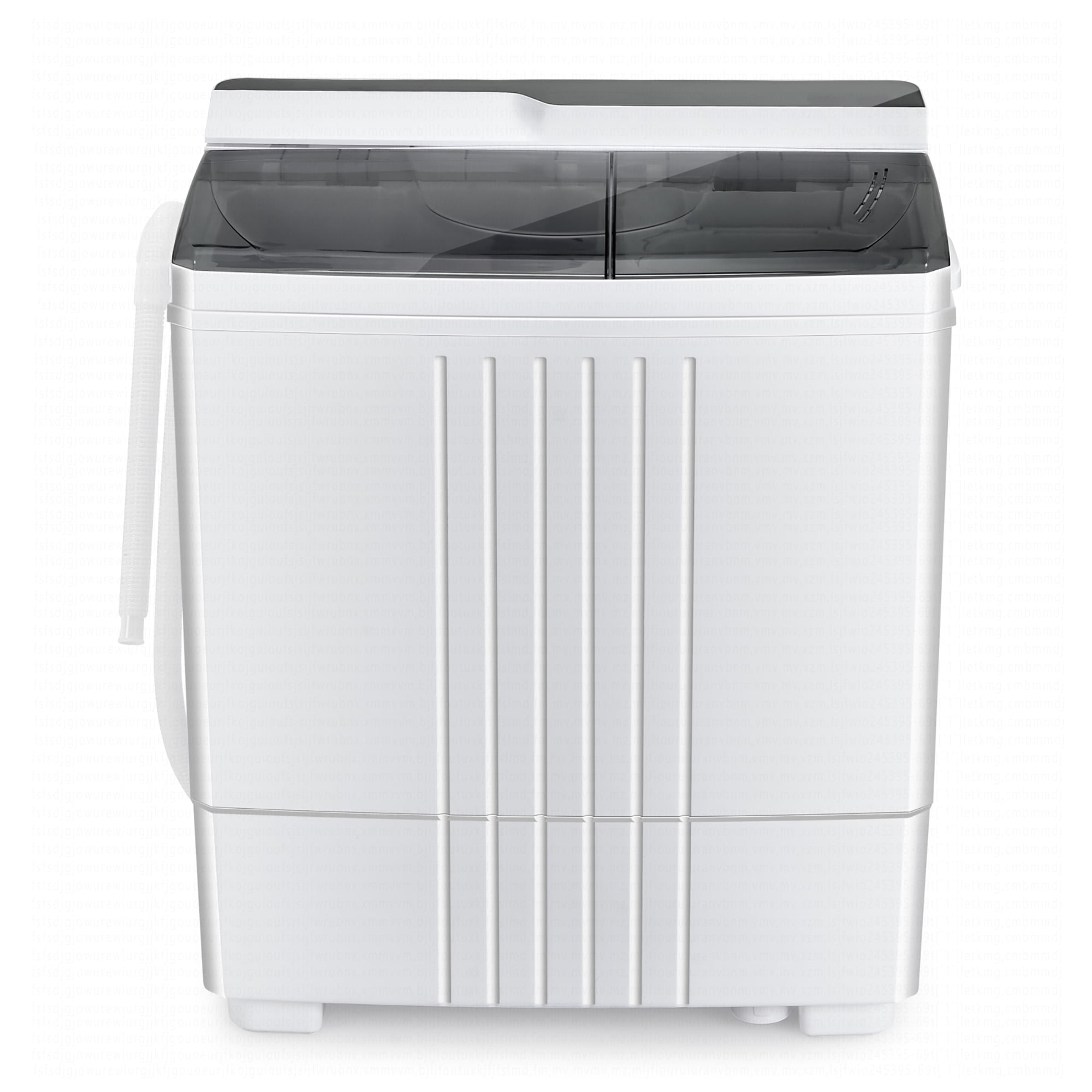Save time and water! You can’t miss this portable twin tub washing machine! The unique double-barrel design separates the 2 processes of washing and drying. You can put your clothes in the left tub for washing, and then move them into the right tub to rinse and dry, which will save a lot of water and time, and also prevent second pollution. What’s more, there are independent timers for washing and drying, tailoring your washing plan. Choices of 3 modes also make it more practical to meet your different needs. It will be an ideal choice to meet your daily laundry needs in your home, dormitory, apartment, or RV. Feature Separated wash & dry processes prevent second pollution Independent time settings of wash & dry will be more flexible 3 modes of gentle, normal and drain for more choices Powerful swirl washing makes it more efficient Built-in drain pump allows easy drainage Compact size & light weight for you to carry it anywhere you like Practical capacity of 14.4 lbs for washing and 6.6 lbs for drying meet your daily needs Plastic material prevent it from rusting easily Specification Color: Grey + White Material: PP Product Dimensions(lid closed): 25” x 15” x 28.5” (L x W x H) Product Dimensions(lid open): 25” x 15” x 36.5” (L x W x H) Diameter of Water Inlet Pipe (connect to faucet ): 1” Wash Tub Capacity: 14.4lbs Dry Tub Capacity: 6.6 lbs Washing Power: 260 W Spinning Power: 140 W Length of Wire : 61” Length of Drainage Pipe: 42” Length of inlet Pipe: 46.5” Net Weight: 30 lbs Package Includes: 1 x Twin Tub Clothes Washing Machine 1 x Water Inlet Pipe 1 x Safety Cover 1 x User’s Guide
