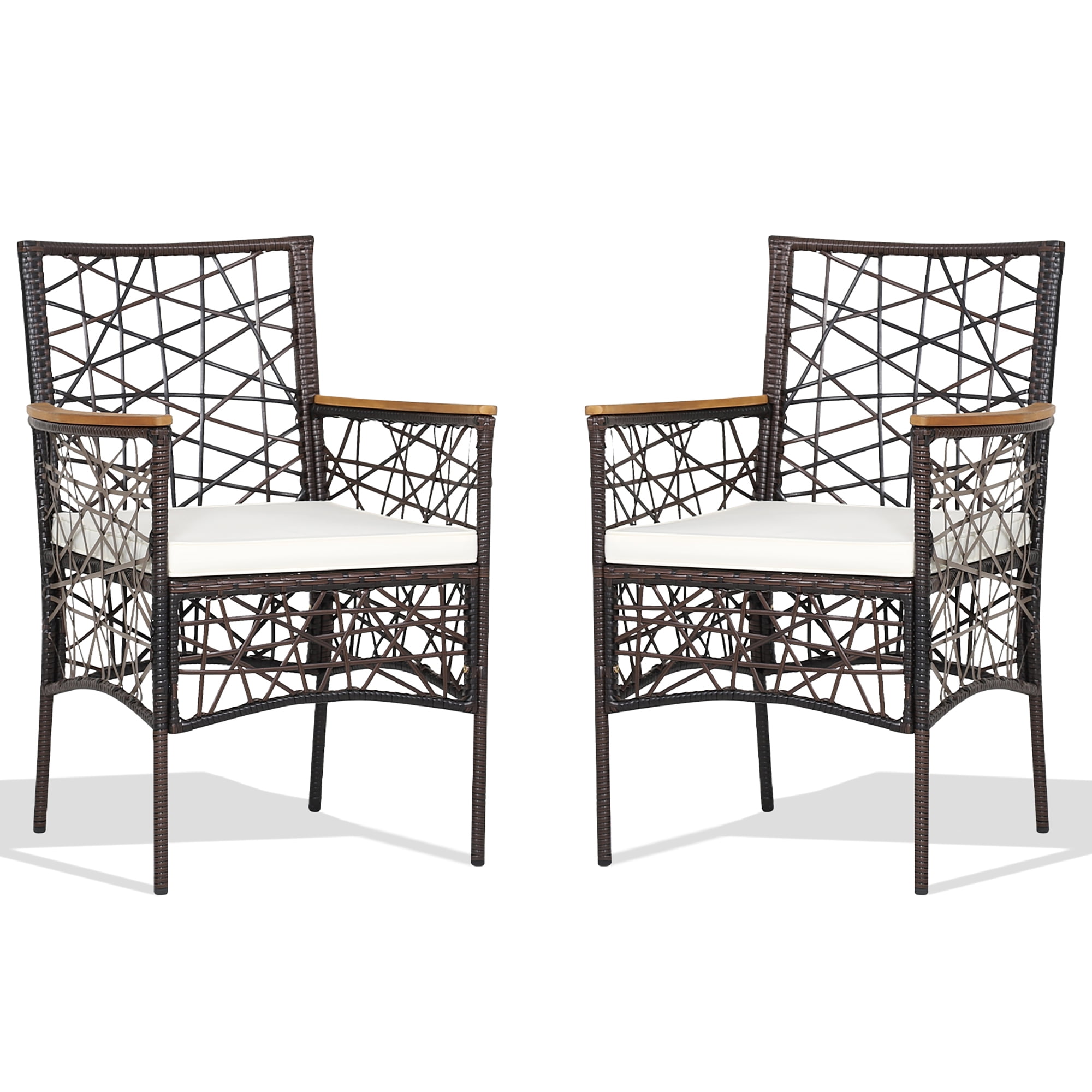 Costway 2pcs PE Wicker Patio Bistro Chairs Acacia Wood Armrests w/ Cushions Outdoor