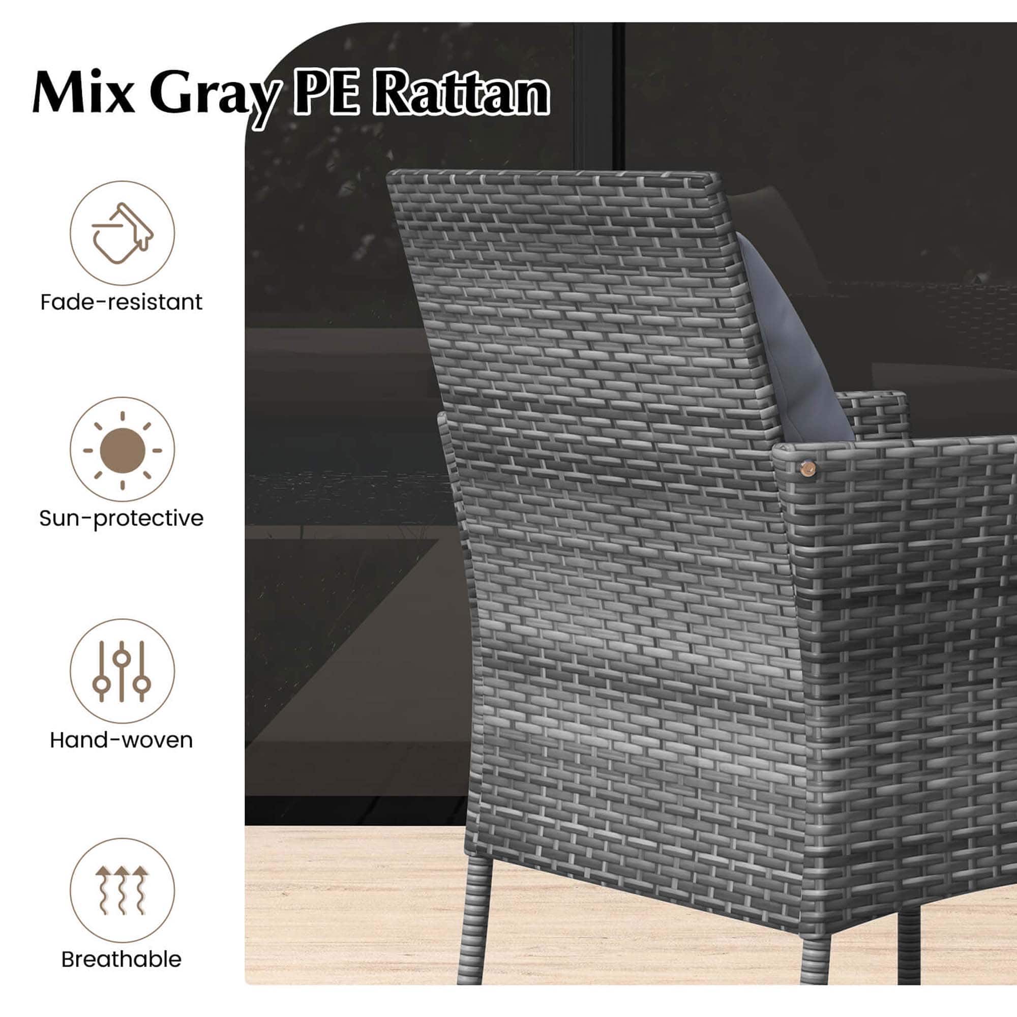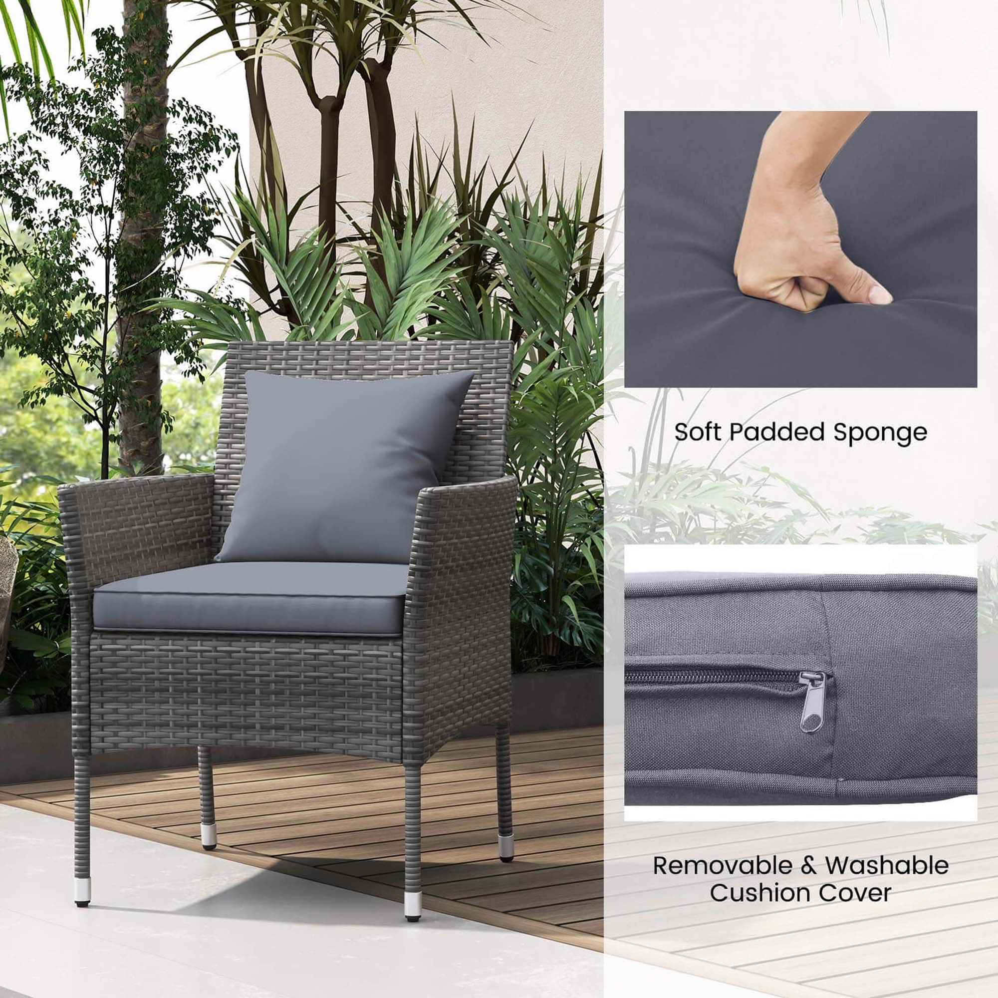Enhance your outdoor living experience with our 3-piece patio porch furniture set. The sun-protective PE rattan and stable metal frame not only enhance the durability of this outdoor table and chairs but also add a modern touch to your outdoor space. In addition, the design of each patio chair incorporates a soft cushion to ensure your comfort. And the cushions are removable, allowing for a more breathable and comfortable seating experience. The tempered glass coffee table keeps essentials close to hand for great convenience. This compact patio set is ideal for small areas, ensuring your outdoor space remains inviting and stylish.