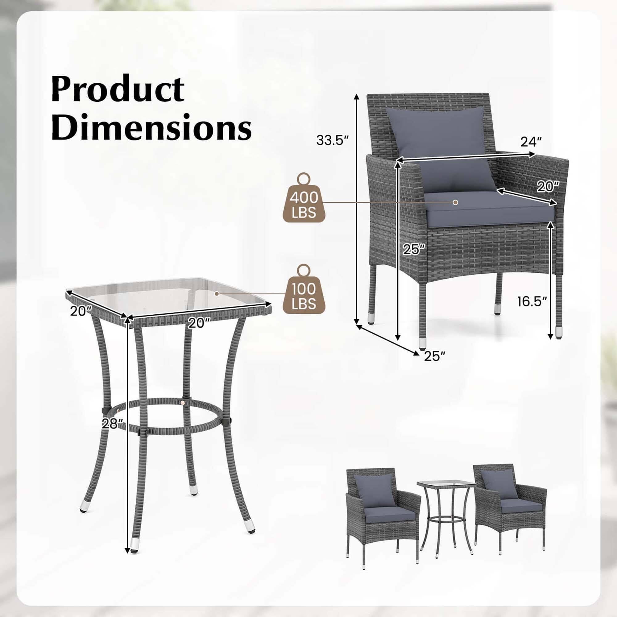 - Product Name: 3 PCS Patio Furniture Set with Cushioned Patio Chairs & Tempered Glass Coffee Table