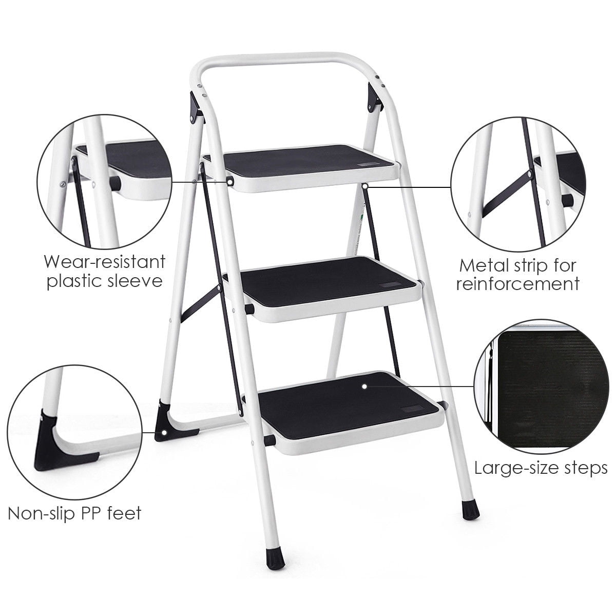 Costway 3 Step Lightweight Ladder HD Platform Foldable Stool 330 LB Cap. Saving Space