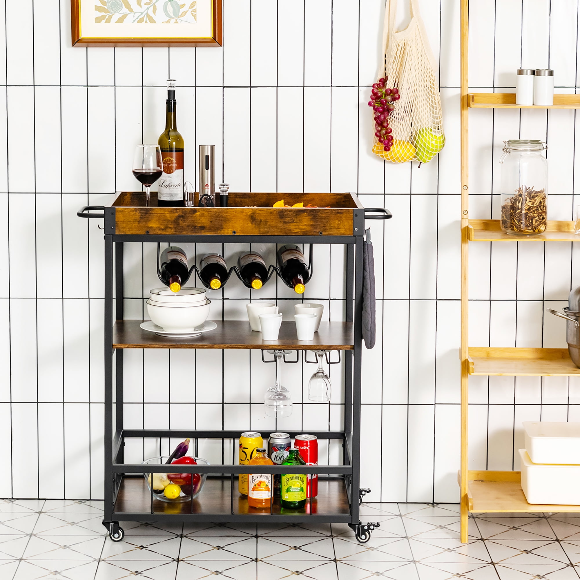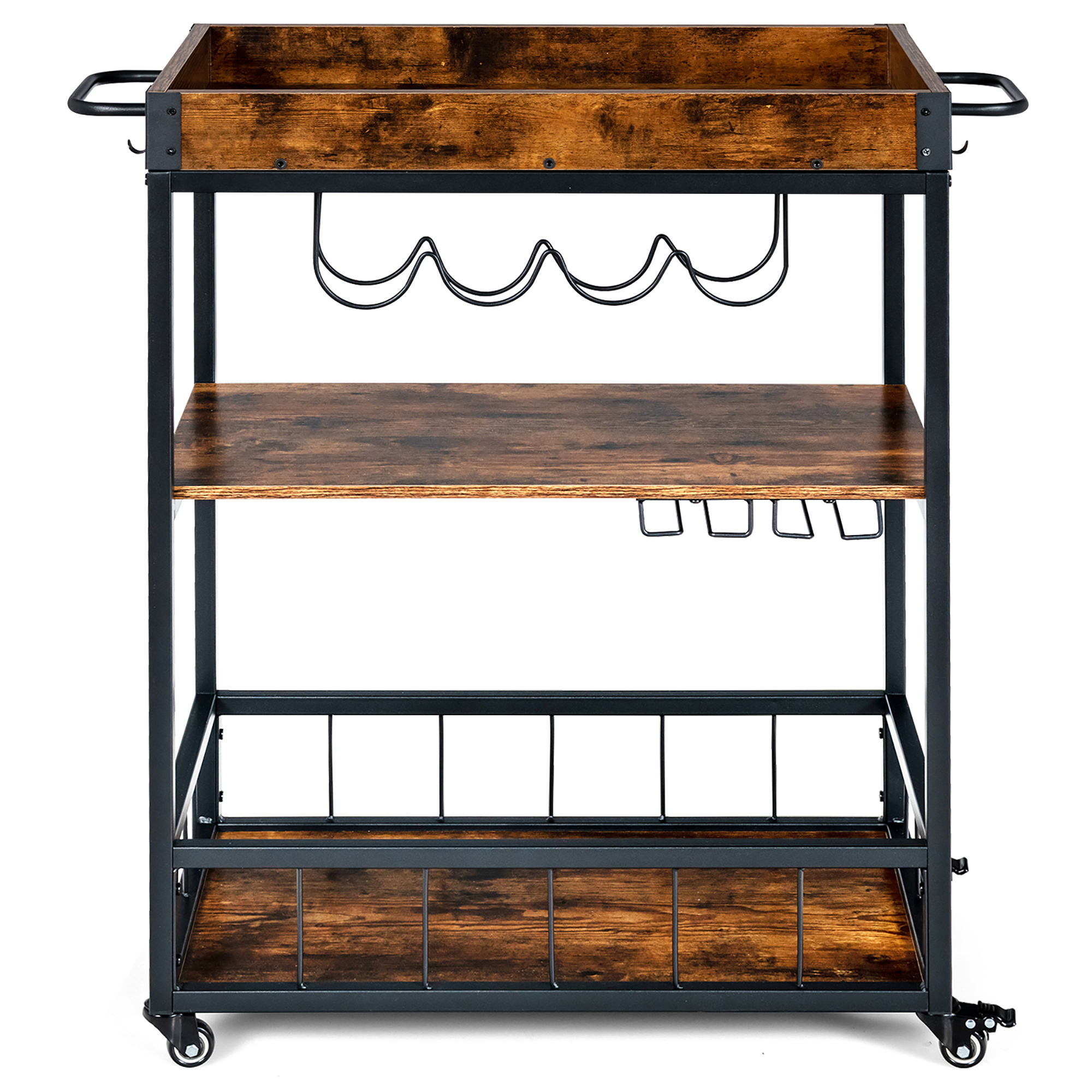 Costway 3-Tier Rolling Kitchen Cart Serving Trolley Wine Rack Removable Tray