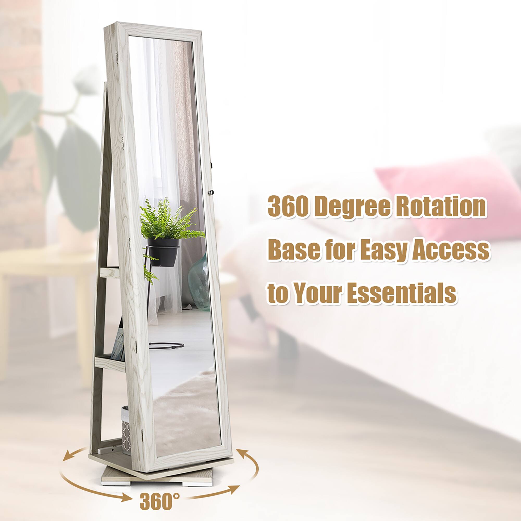 - Product Name: 360degree Rotatable Jewelry Cabinet 2-in-1 Lockable Mirrored Organizer White