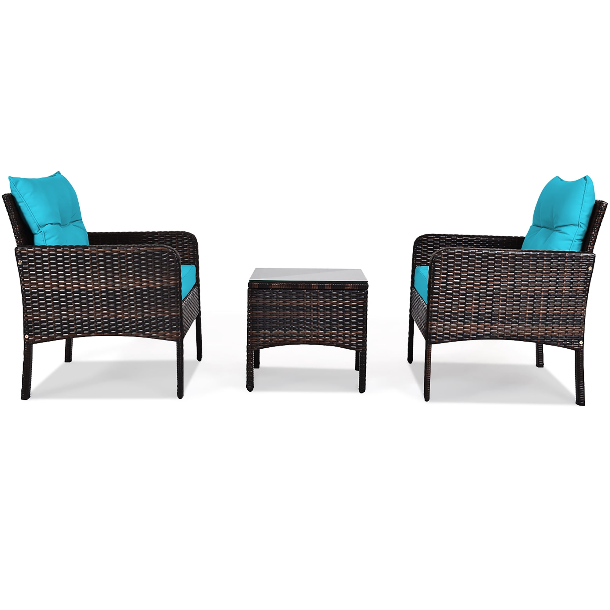 Costway 3PCS Outdoor Rattan Conversation Set Patio Garden Cushioned Sofa Chair Turquoise
