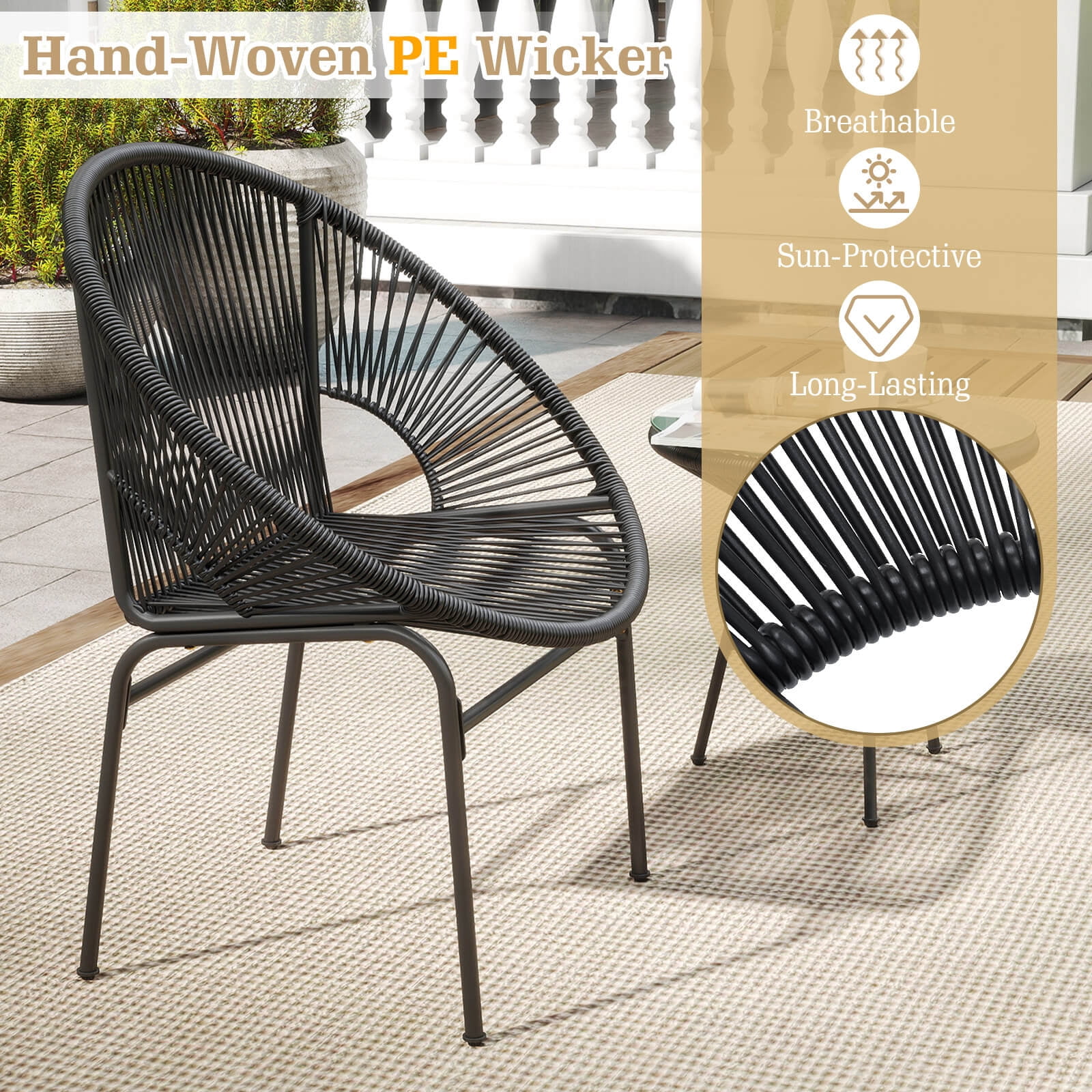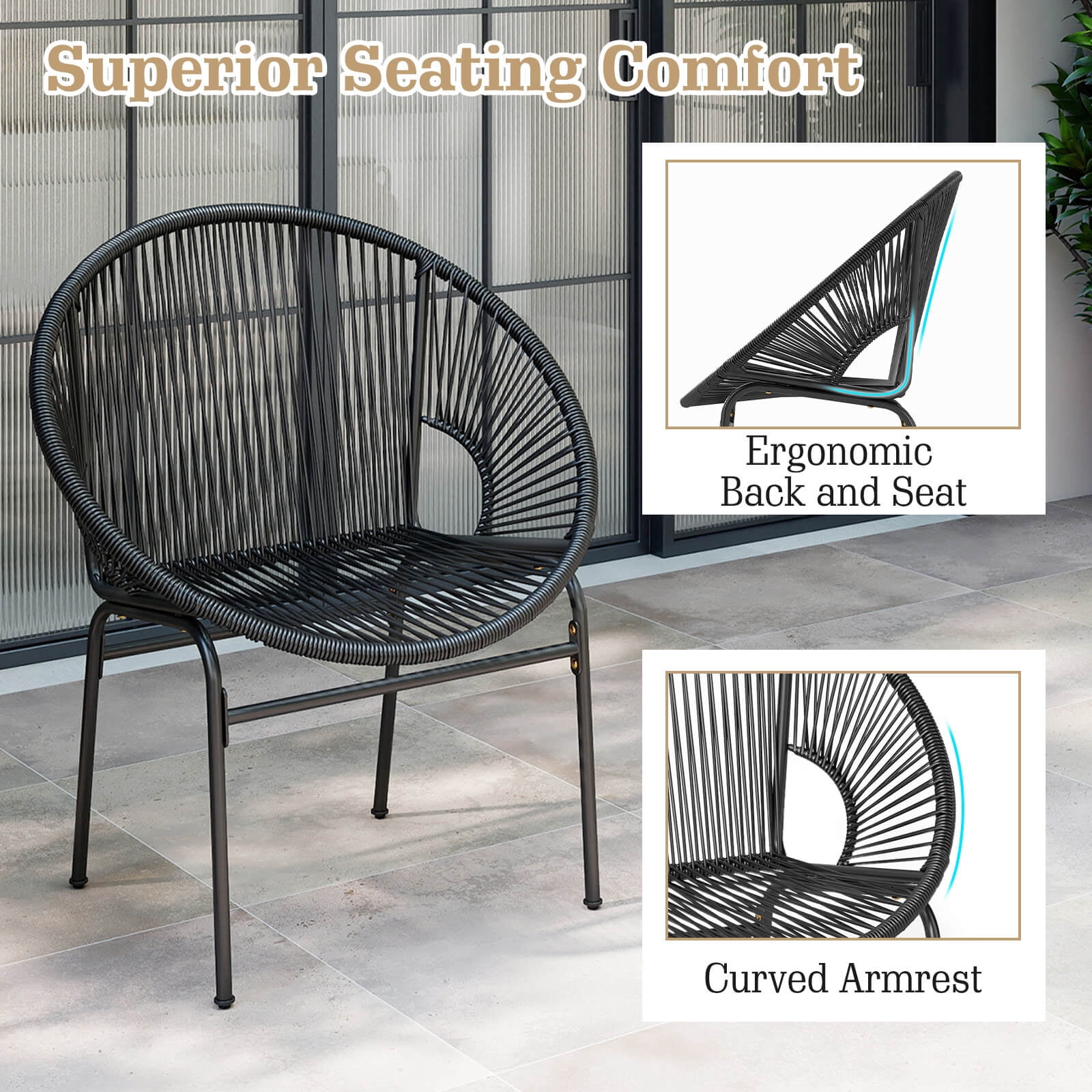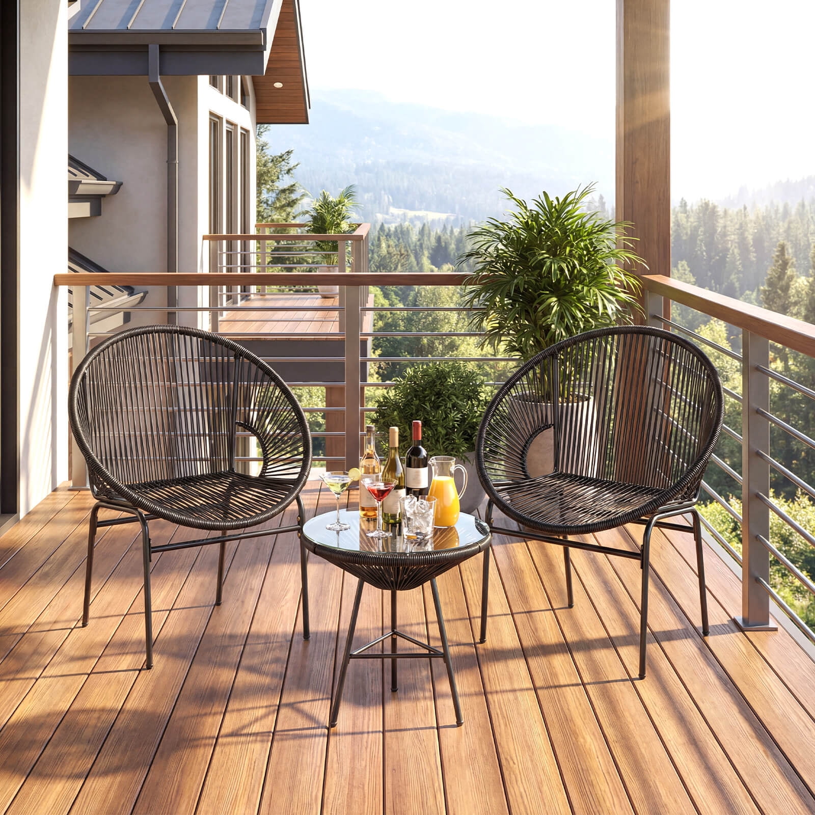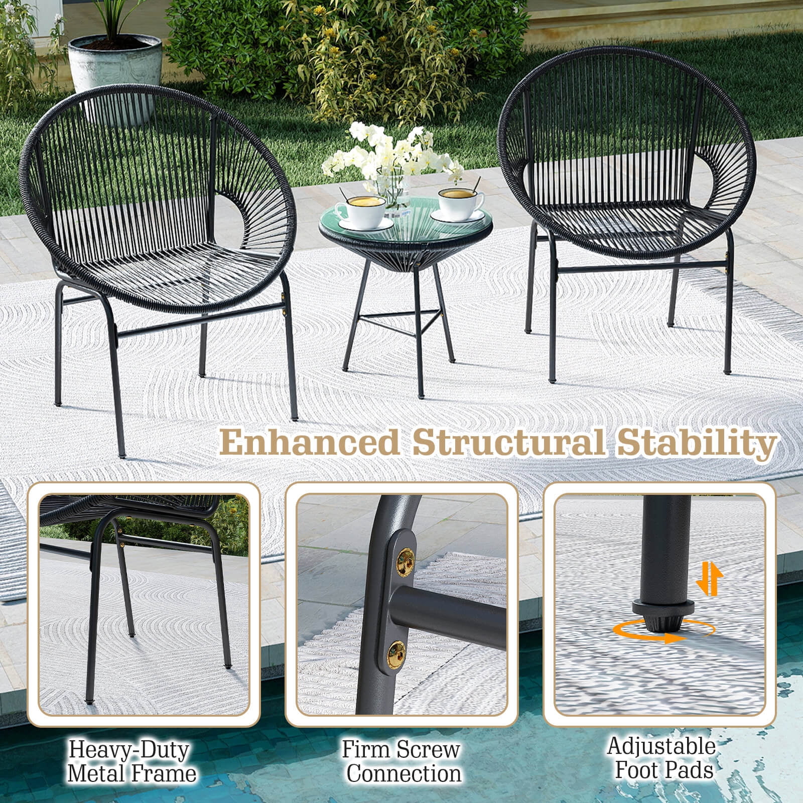 Costway 3PCS Patio Acapulco Furniture Bistro Set Plastic Rope Glass Table Black