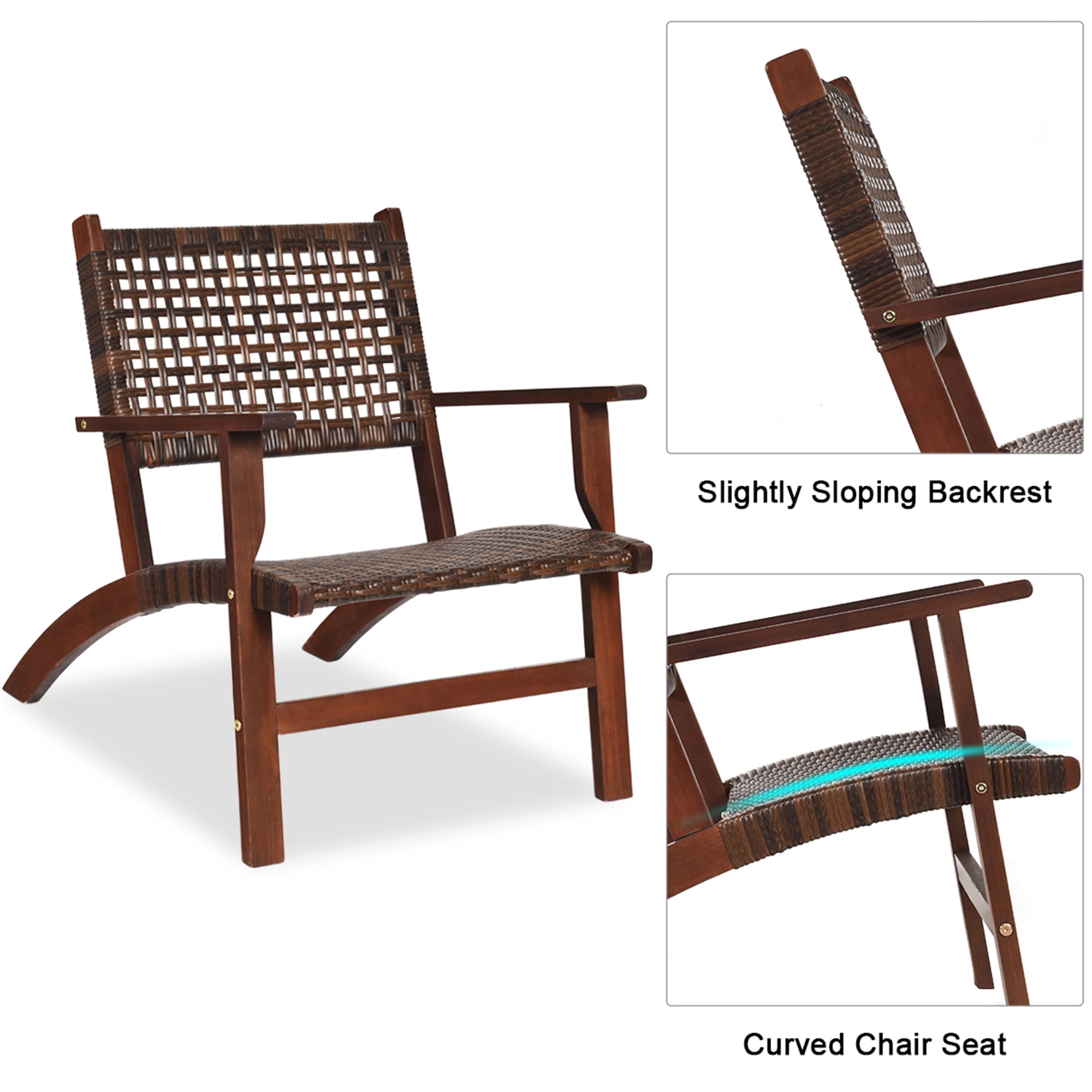 Costway 3PCS Patio Rattan Furniture Set Solid Eucalyptus Wood Frame Bistro Set with Coffee Table Patio Conversation Set (Brown)