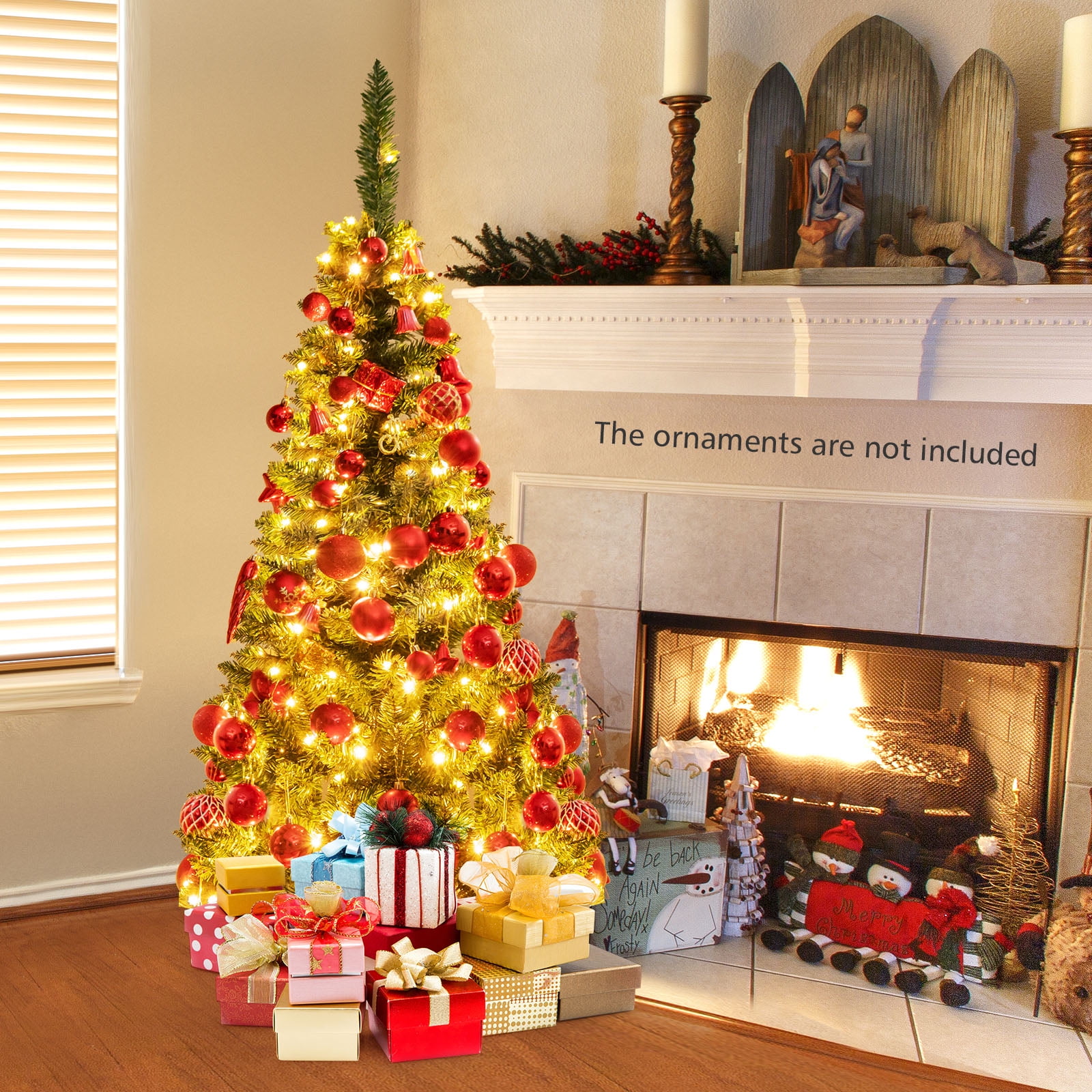 Costway 4.5ft Pre-Lit Hinged Pencil Christmas Tree 150 White Lights