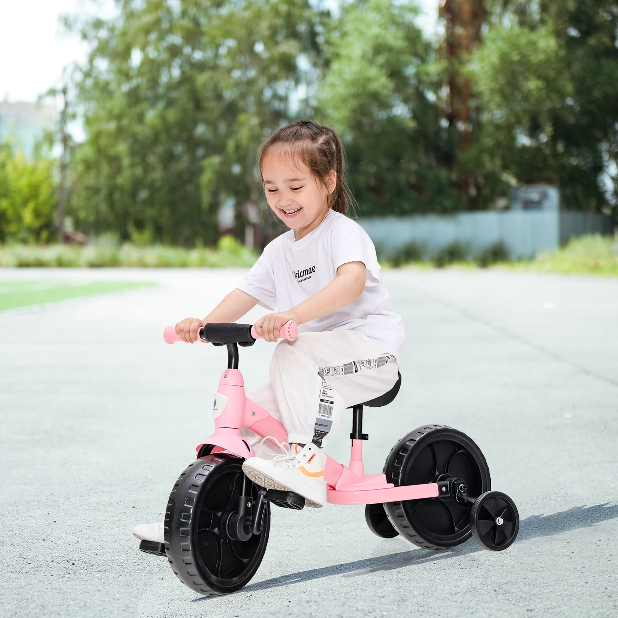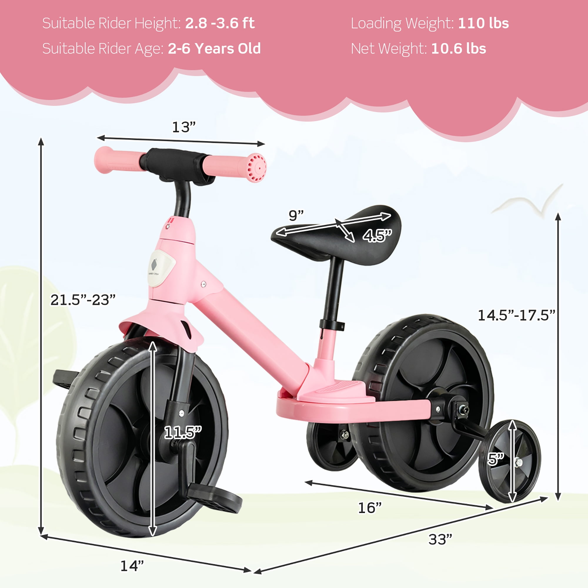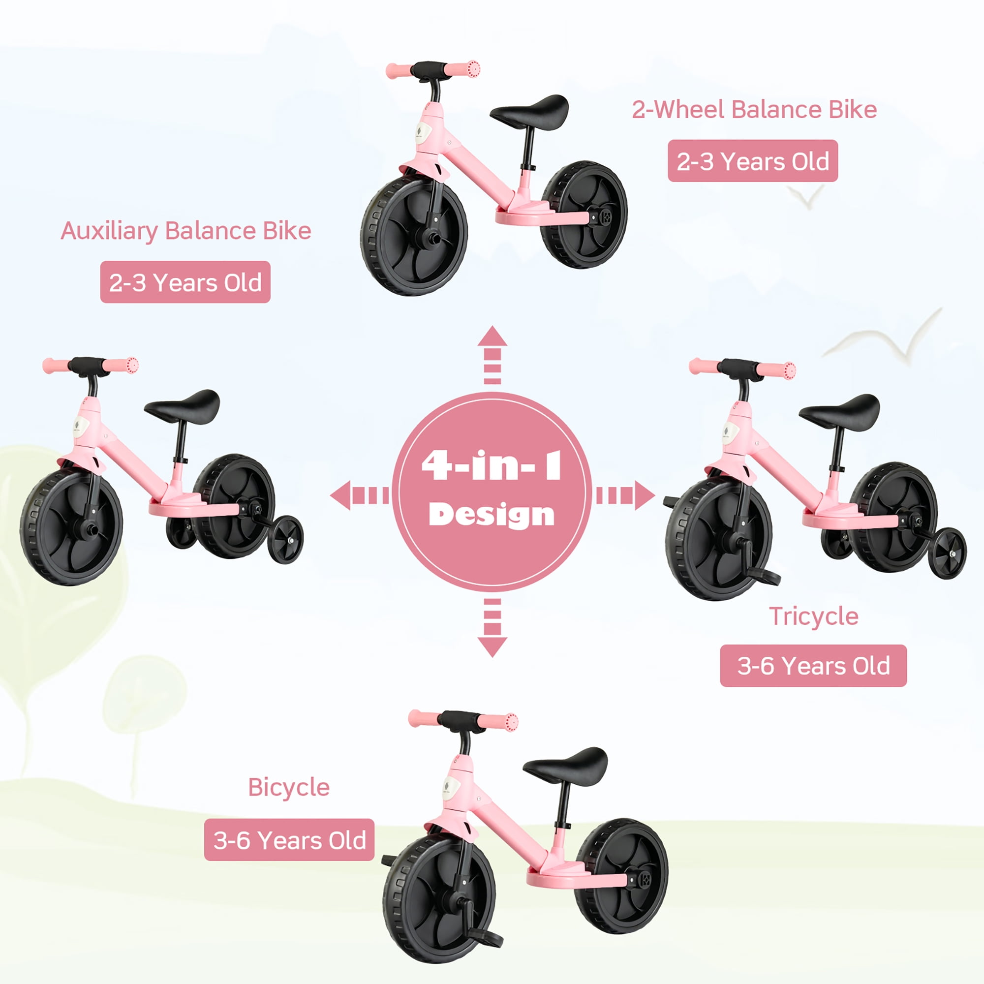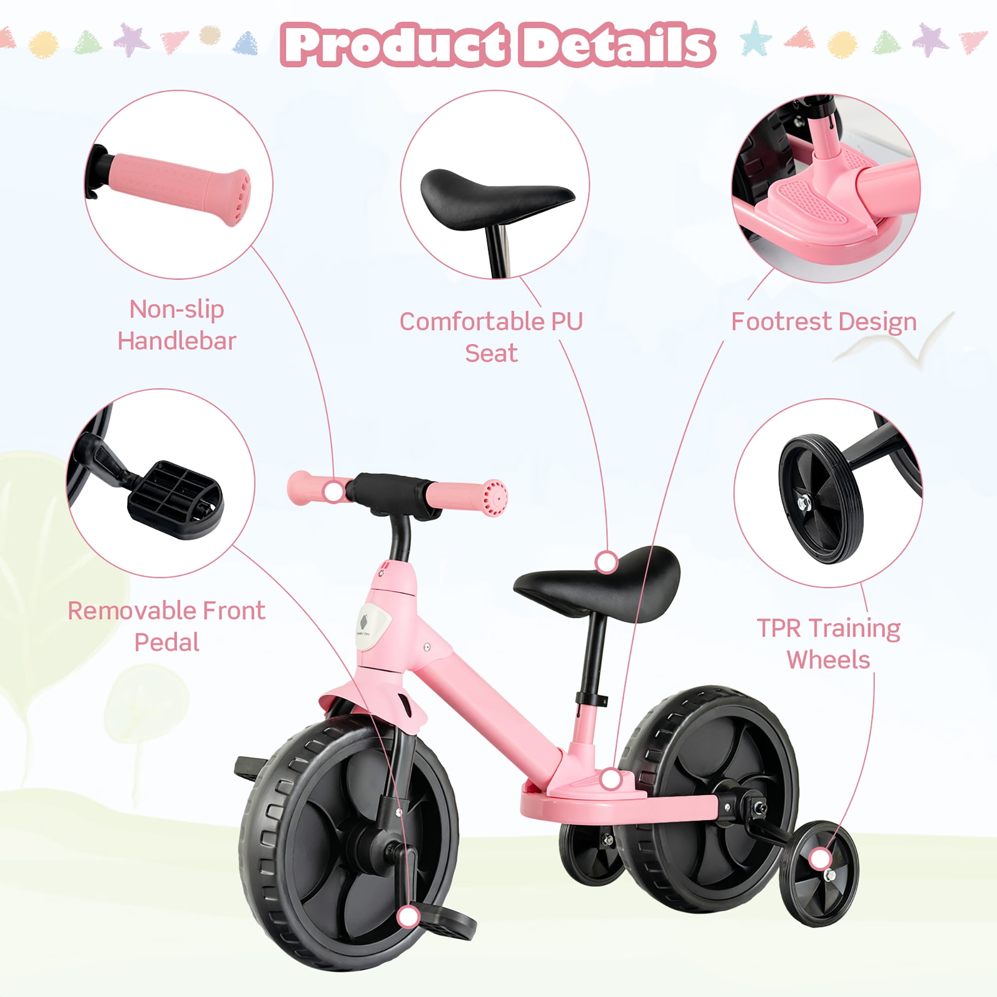 Costway 4-in-1 Kids Training Bike Toddler Tricycle w/ Training Wheels & Pedals Pink