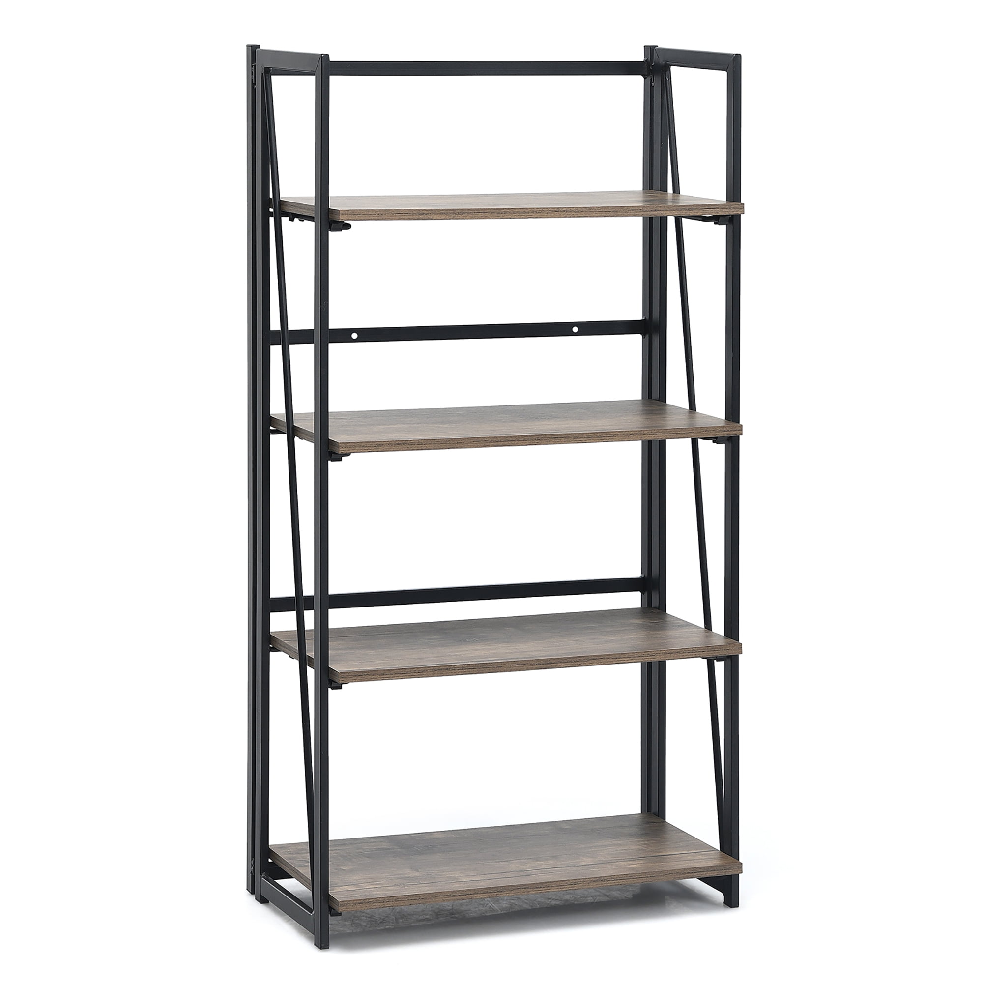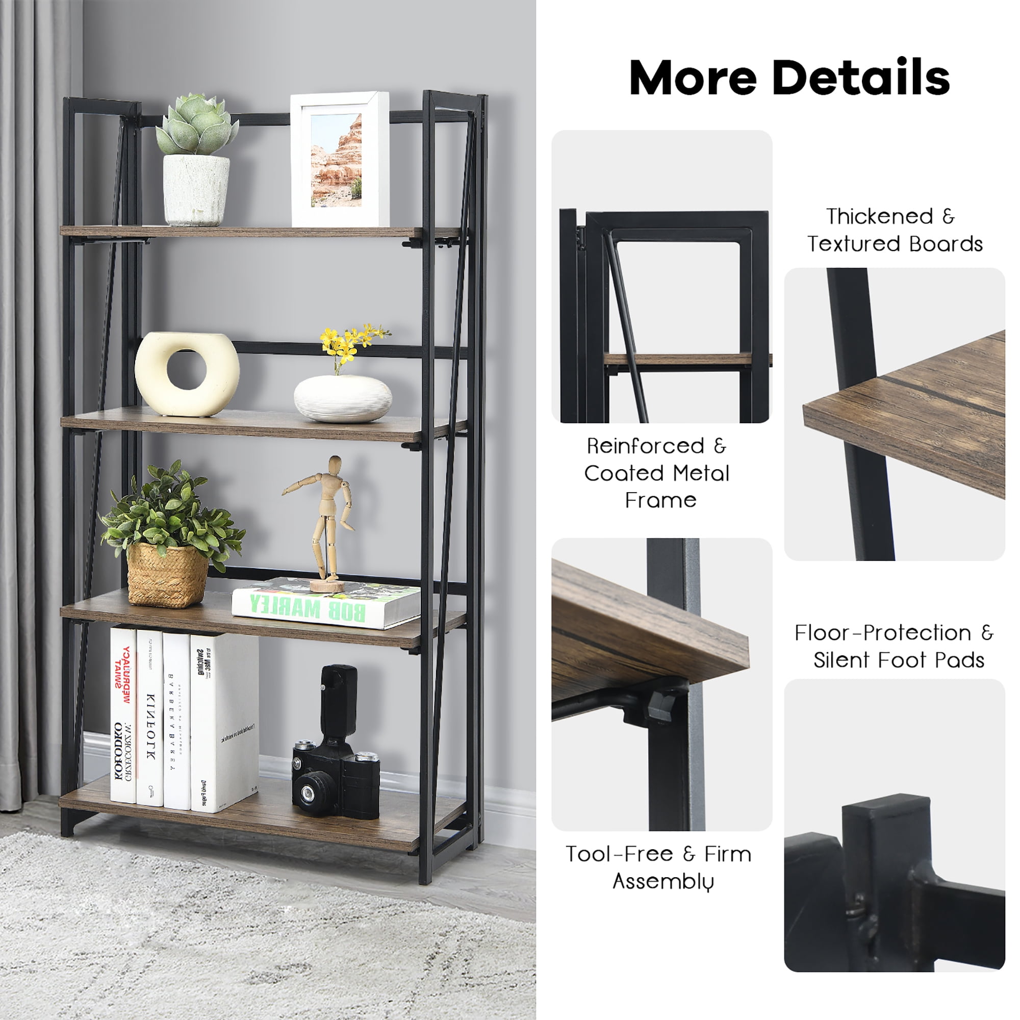 Costway 4-Tier Folding Bookshelf No-Assembly Industrial Bookcase Display Shelves