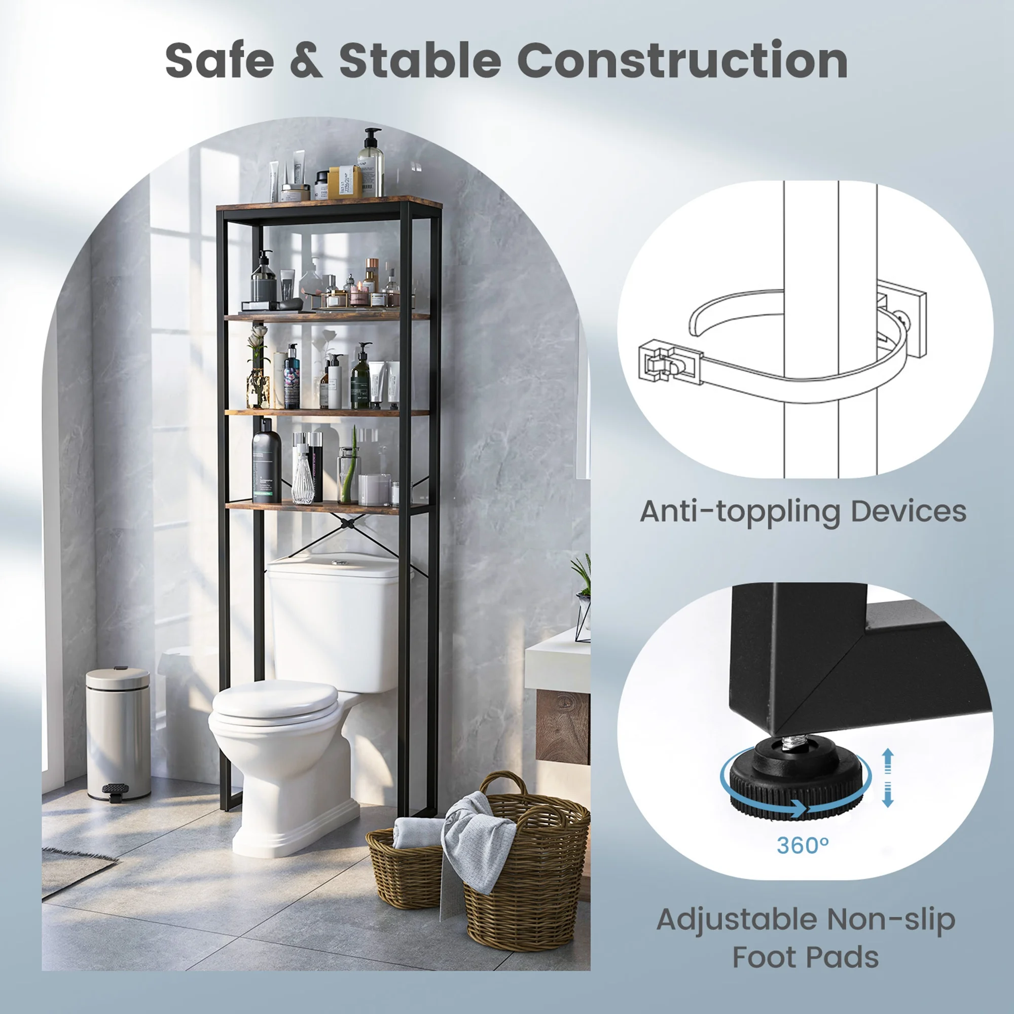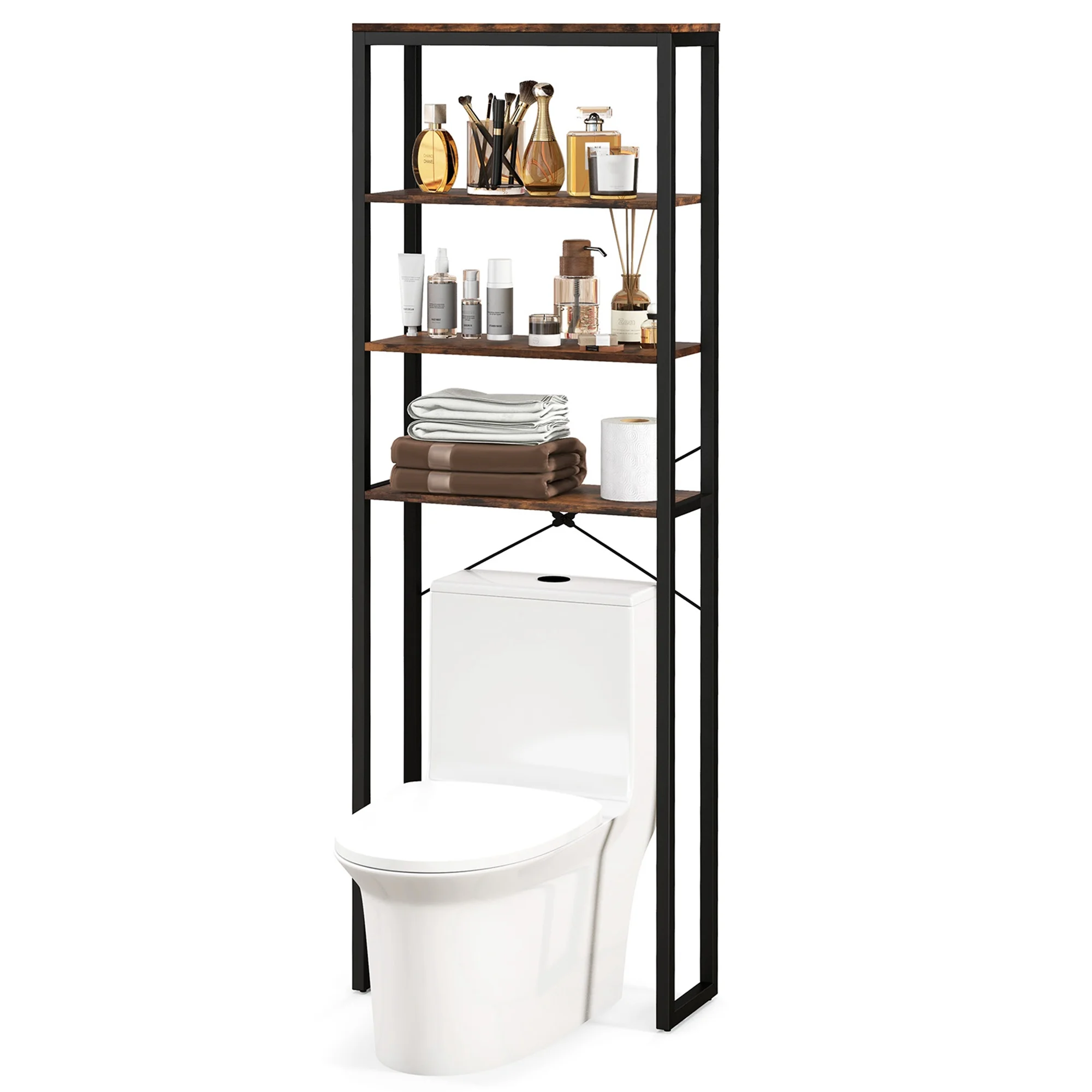 Costway 4-Tier Over the Toilet Storage Rack Freestanding Bathroom Organizer Rustic Brown