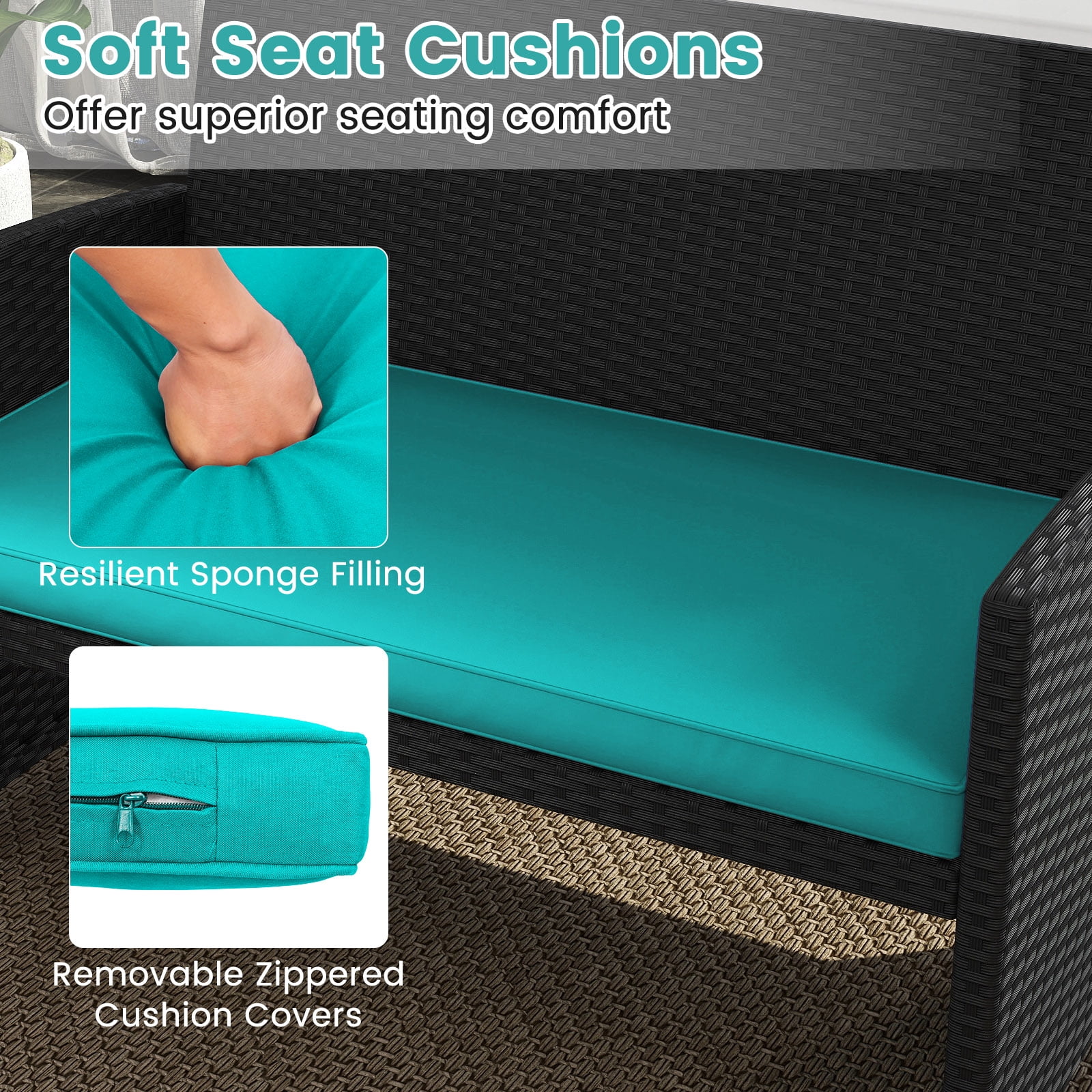 Costway 4PCS Patio Rattan Furniture Conversation Set Cushion Sofa Table Garden Turquoise
