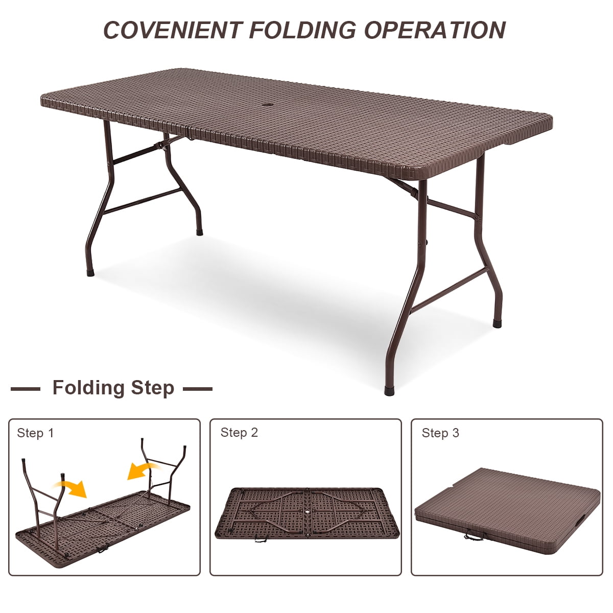 Costway 6′ Folding Table Rattan Portable Indoor Outdoor Picnic Party Dining Camping