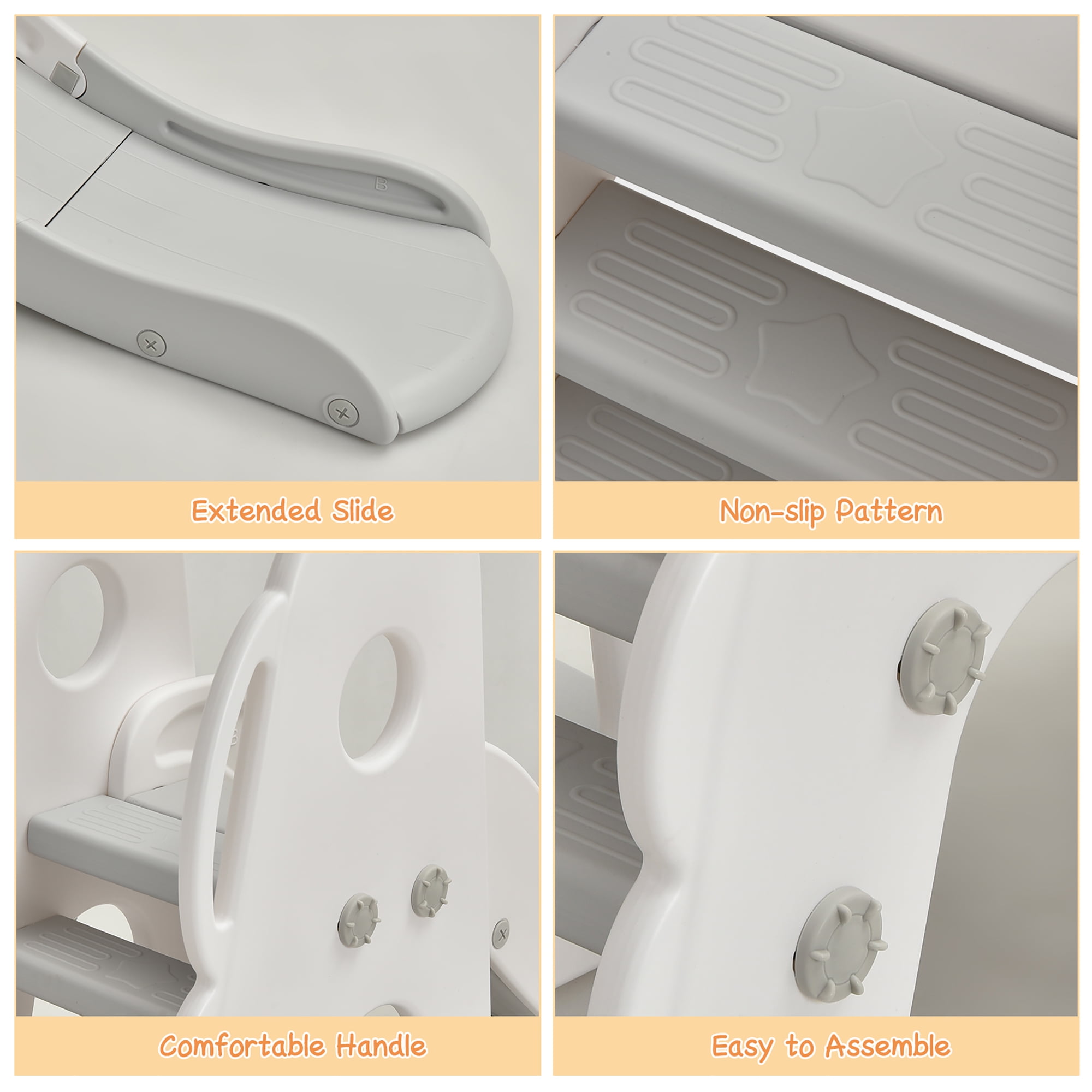 6-in-1 Design for Endless Fun: Our toddler climber and swing set includes 6 different activities, such as adjustable basketball hoop, smooth slide, climbing ladder, safety swing, football gate and golf hole. This versatile kids playground is full of opportunities for adventure and fun in your house for your kids and their friends. Sturdy Material & Durable Base: This colorful 6-in-1 playing set is made of premium HDPE material, which is durable and will not harm your child’s health. The water injection base and stable construction enhance the overall safety. In addition, the smooth surface protects your kids’ delicate skin. Smooth Slide & Safe Swing: The slope of the slide adopts a gentle design with an acceleration zone and a buffer zone, which allows your kid to slide smoothly and land safely. Plus, the safety belt design and detachable T-shaped safety protection ensure safety during playtime. With 3 adjustable height design, the swing can entertain your children and their friends at home. 3 Different Ball Games: The height of the basketball rack can be adjusted from 29” to 36.5”. Moreover, it can be easily removed and used separately. There is also a football gate and a golf hole, where kids can enjoy the goal of shooting. Various combinations make kids enjoy more fun. Easy to Assemble: Our 6-in-1 game set can be quickly assembled in just a few steps according to the clear instructions. All necessary hardware is included and no complicated tools are needed. This toddler slide and swing set will provide a never ending adventure for your little ones!