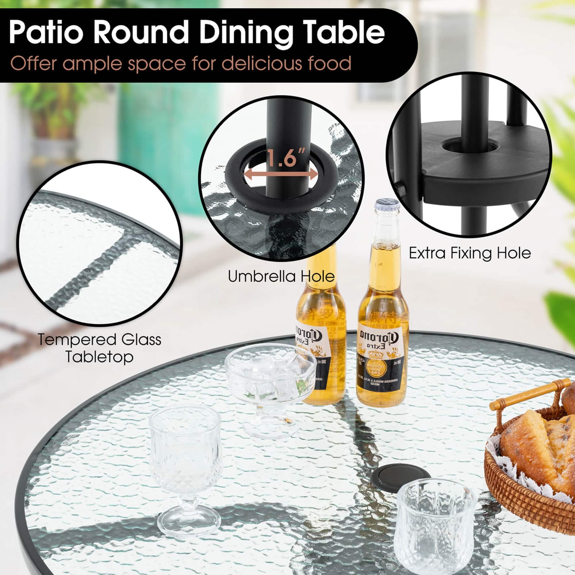 - Product Name: 6 PCS Patio Dining Set Folding Chairs Glass Table Tilt Umbrella Garden
