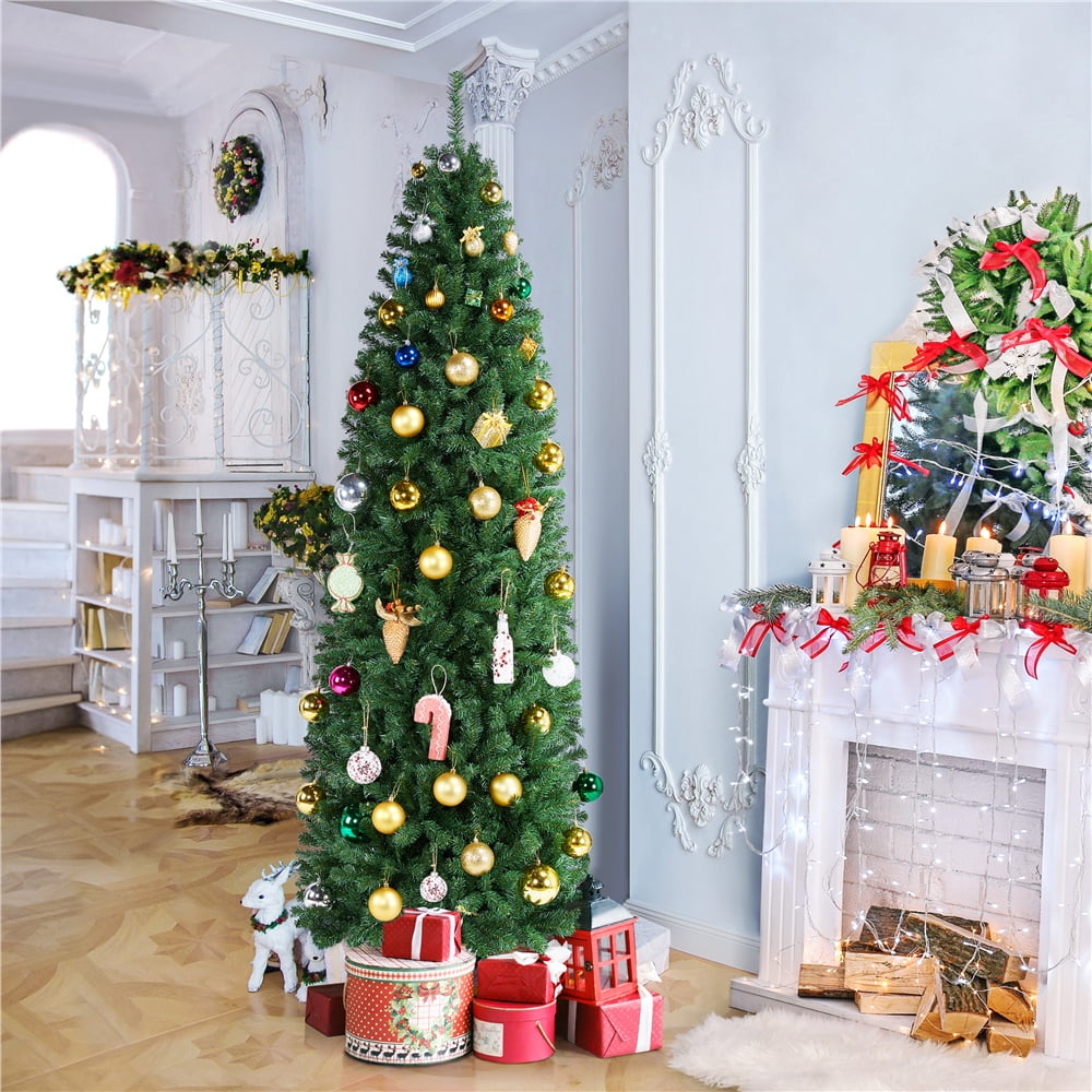 This is our 6 ft pre-lit Christmas pine tree which is made of eco-friendly and non-flammable PVC material to provide you with long-term quality service. Designed with 484 tips and decorated with 49 pinecones, the tree brings out a more vivid effect. Pre-installed with 260 warm LED lights, the Christmas tree saves you the hassle of hanging up the lights and help light up your room. Moreover, the hinged construction reduces the tedious task of unfolding the branches, so that when you get it, you can use it quickly, just with simple operation. Foldable X-shaped iron stand prevents breakage and enhances the balance of the tree, offering stability to keep the wondrous tree standing all year around. Whether for your home, courtyard, or for commercial places like shops, the pre-lit pine tree is the perfect eye-catching decoration to add multiple fun and festive holiday fullness! Feature Pre-installed with 260 warm LED lights for brilliant shine Decorated with 49 pine cones to offer a touch of nature Crafted with 484 branch tips for leafy and realistic appearance New and non-flammable PVC material, smell-free and not easily deformed All hinged construction convenient for assembly and storage Separated into 3 sections, easy to be placed in a tree storage bag X-shaped metal stand, wear and breakage resistant, offer more stability Foot pads effectively protect floors from scratching Eye-catching addition for homes, office, shops and other business places Match any style of room, add a rich Christmas atmosphere to you UL588 certified transformer for safer use Specification Color: green Main Material: PVC, iron Overall Dimensions: ¦µ3.7’¡Á6’H Number of Tips: 484 tips Number of Lights: 260 Number of Pine Cones: 49 Net weight: about 21.8 lbs Package Includes: 1¡ÁPre-lit Christmas tree 1¡Ástand 1¡Áadapter 1¡Áinstruction