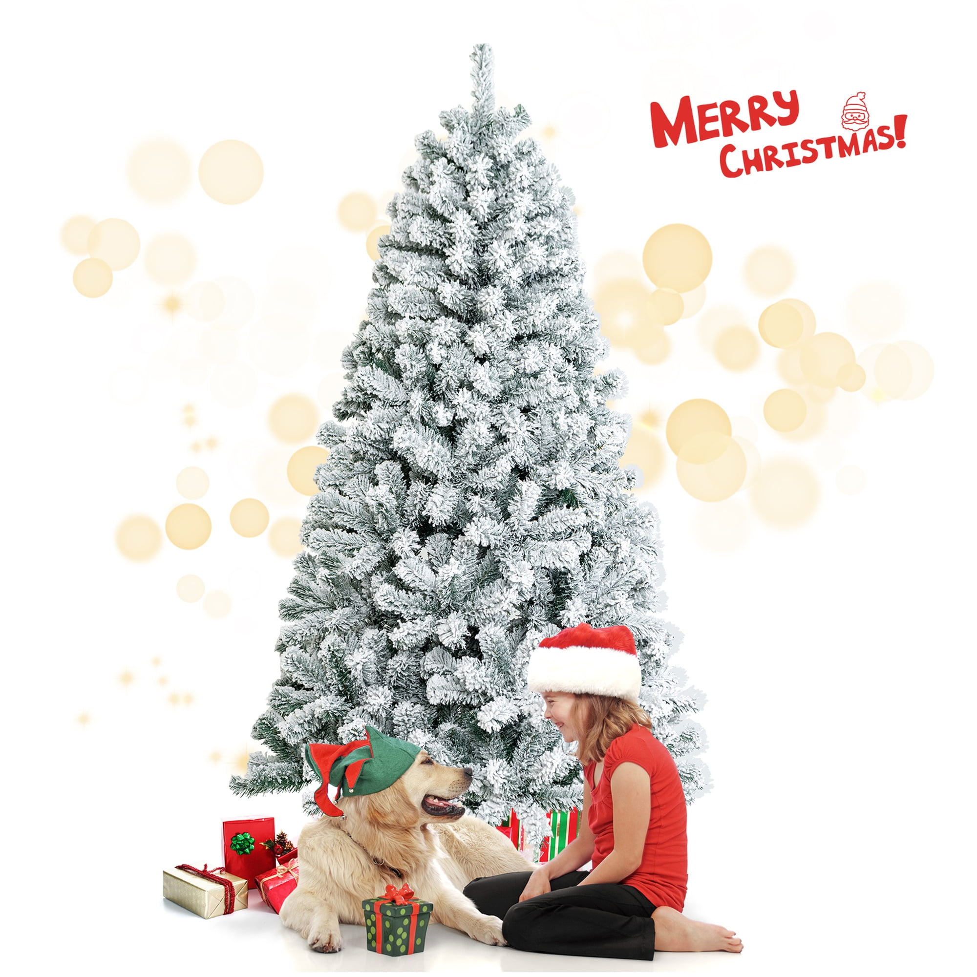 Costway 6ft Snow Flocked Hinged Artificial Christmas Tree Unlit Metal