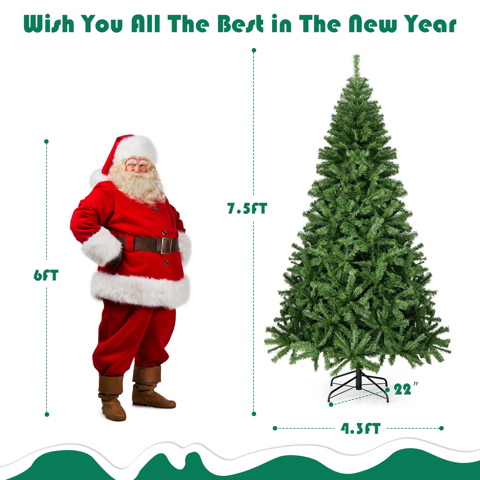 Enjoy your holiday with our 7.5FT christmas tree! Its high-quality PVC material, simple green color and 1346 branch tips create the natural appearance of a full-bodied, genuine tree. The sturdy iron stand can support more weight and make our christmas tree stand more stably and safely different from some plastic stands. Separated into 3 sections, our christmas tree allows for easy assembling, dismantling, and storing. It can really add more excitement and warmth to your wonderful festival! Feature High quality Full-bodied and genuine Come in 3-pieces for quick and easy set-up High- quality PVC material, eco-friendly and safe Simple green color and 1346 tips design to help emulate a real tree Sturdy metal stand provides the tree with greater support and prevent the base from breaking Plastic feet covers prevent the scratches on the floor Perfect for indoor decoration at Christmas and can be used to decorate any room in a house Create a festive and enjoyable atmosphere Specification Color: Green Material: PVC/Iron Overall Dimensions:Φ4.3′ x 7.5′ H Number of Tips: 1346 Net weight: about 23 Lbs Package Includes: 1 x Christmas tree 1 x Stand 1 x Instruction