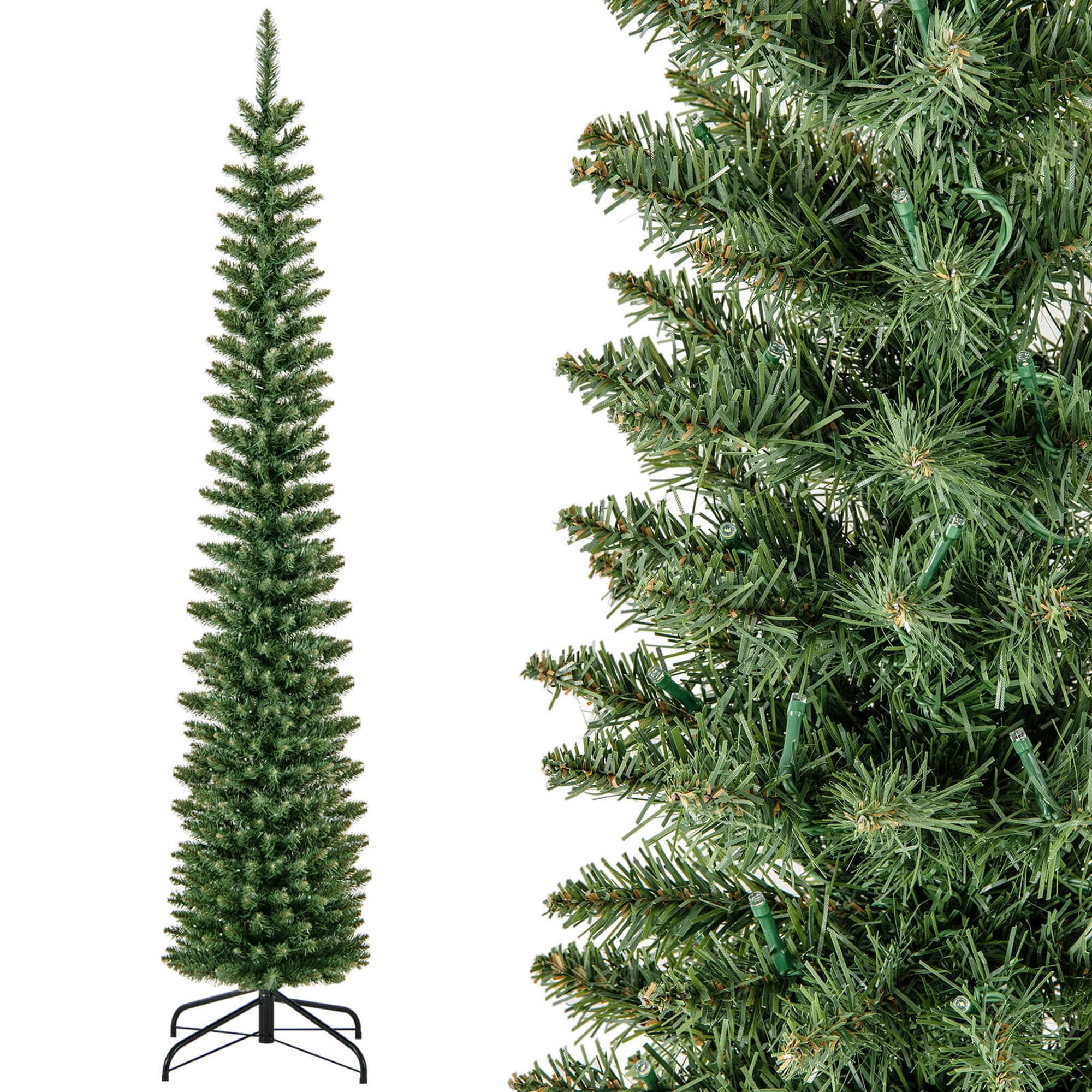 Costway 7 FT Pre-Lit Pencil Christmas Tree with 200 LED Lights & 499 Branch Tips Party