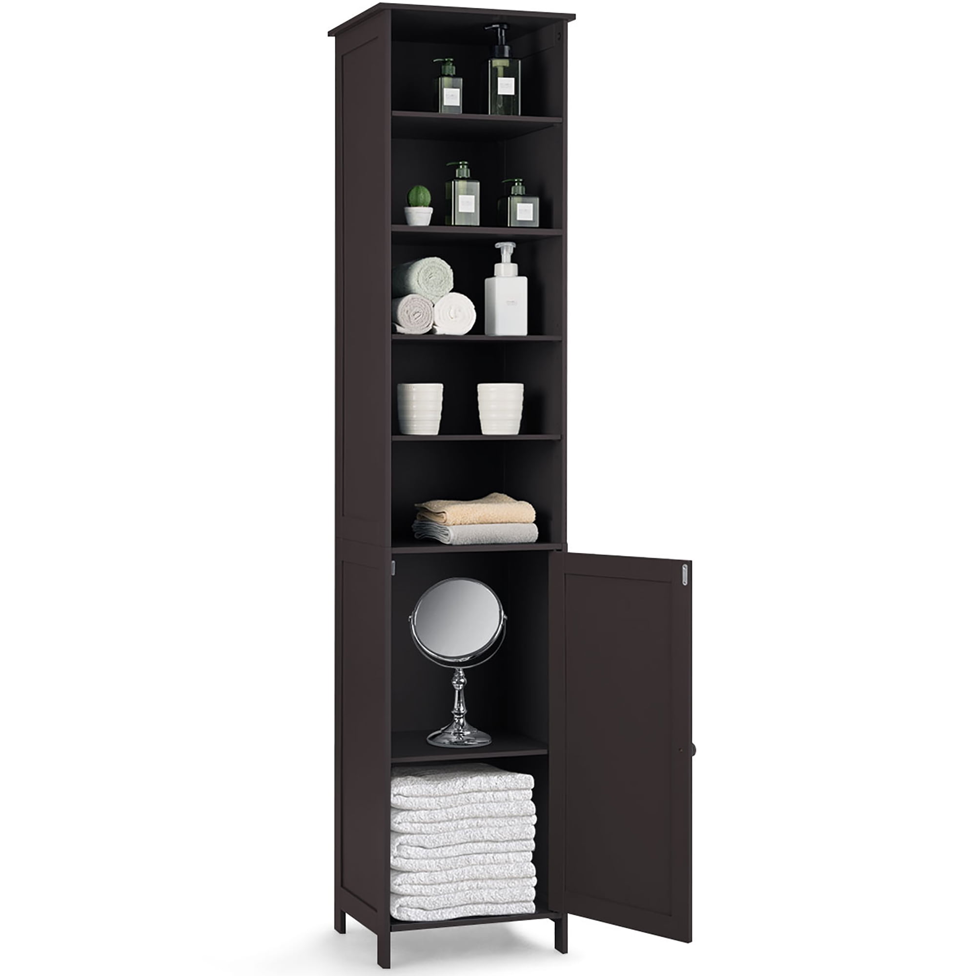 Costway 72” Bathroom Tall Floor Storage Cabinet Freestand Shelving Display Brown