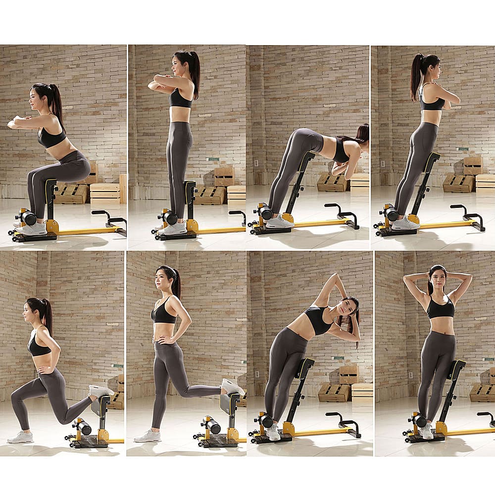 This 8-in-1 multifunctional fitness trainer will provide a core workout training to your body. It is ideal Body Trainer for sit-up, back exercise, push-up and flat support to greatly exercise your abdomen, leg muscles and gluteus. With the load-bearing of 265 lbs, this squat is sturdy, durable and hard to deform or shake. Bottom is designed into T-shape to ensure its stability. Adjust the heights of the cylinders and mat with the knobs to meet the different people’s needs. Ergonomic leg cushion with PVC+PU cover supports your legs softly to make sports more comfortable. 4 enlarged foot pads at the bottom will prevent skid and protect the floor. Slipping can be effectively prevented due to the non-slip handles and the front pedal. Two wheels in the front will help girls move it easily without much effort. And it can be stored or cleaned very easily. Get one of these sissy squat to maintain a good body shape!