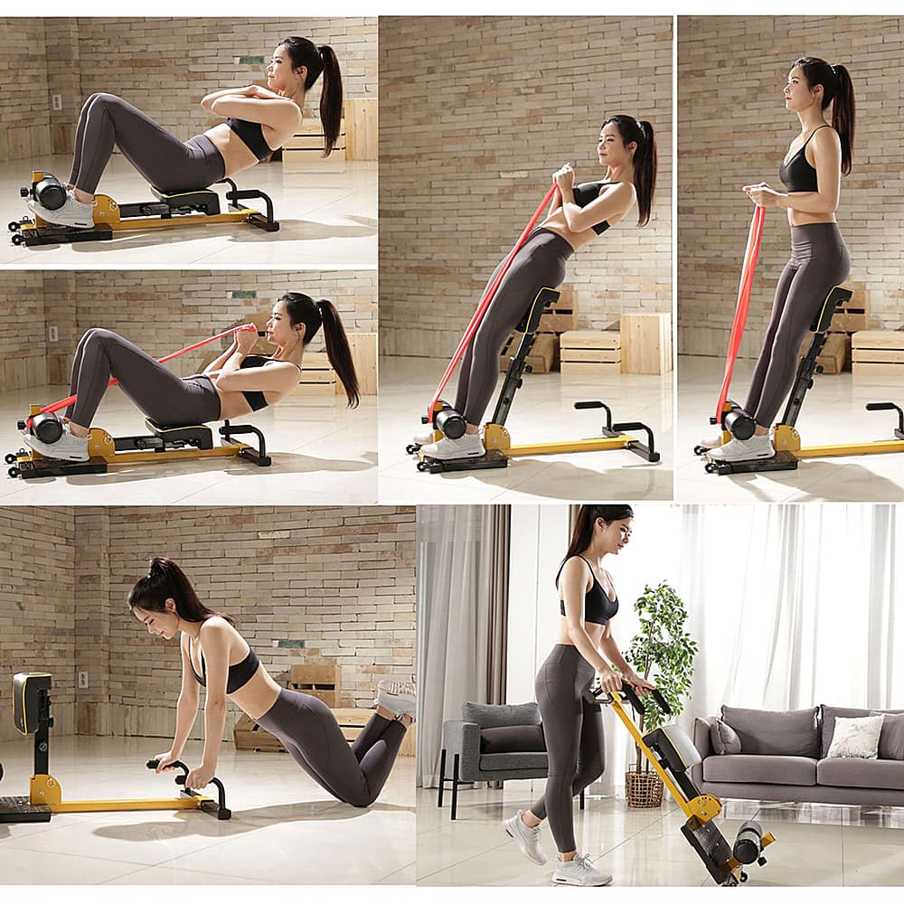 There are 4 enlarged foot pads at the bottom to increase friction as well as protecting the floor. And the non-slip handles together with the front pedal will effectively prevent slip during push-ups squats, sit-ups, twists and flat supports.