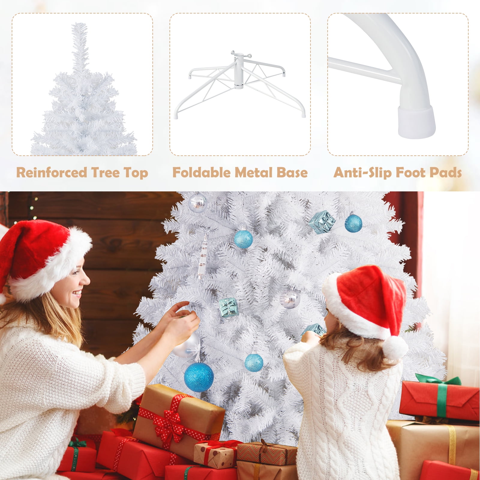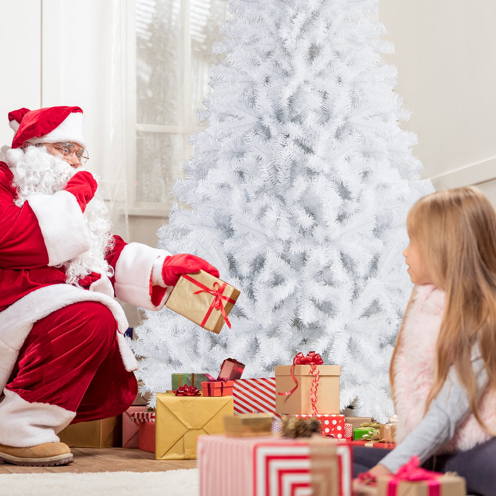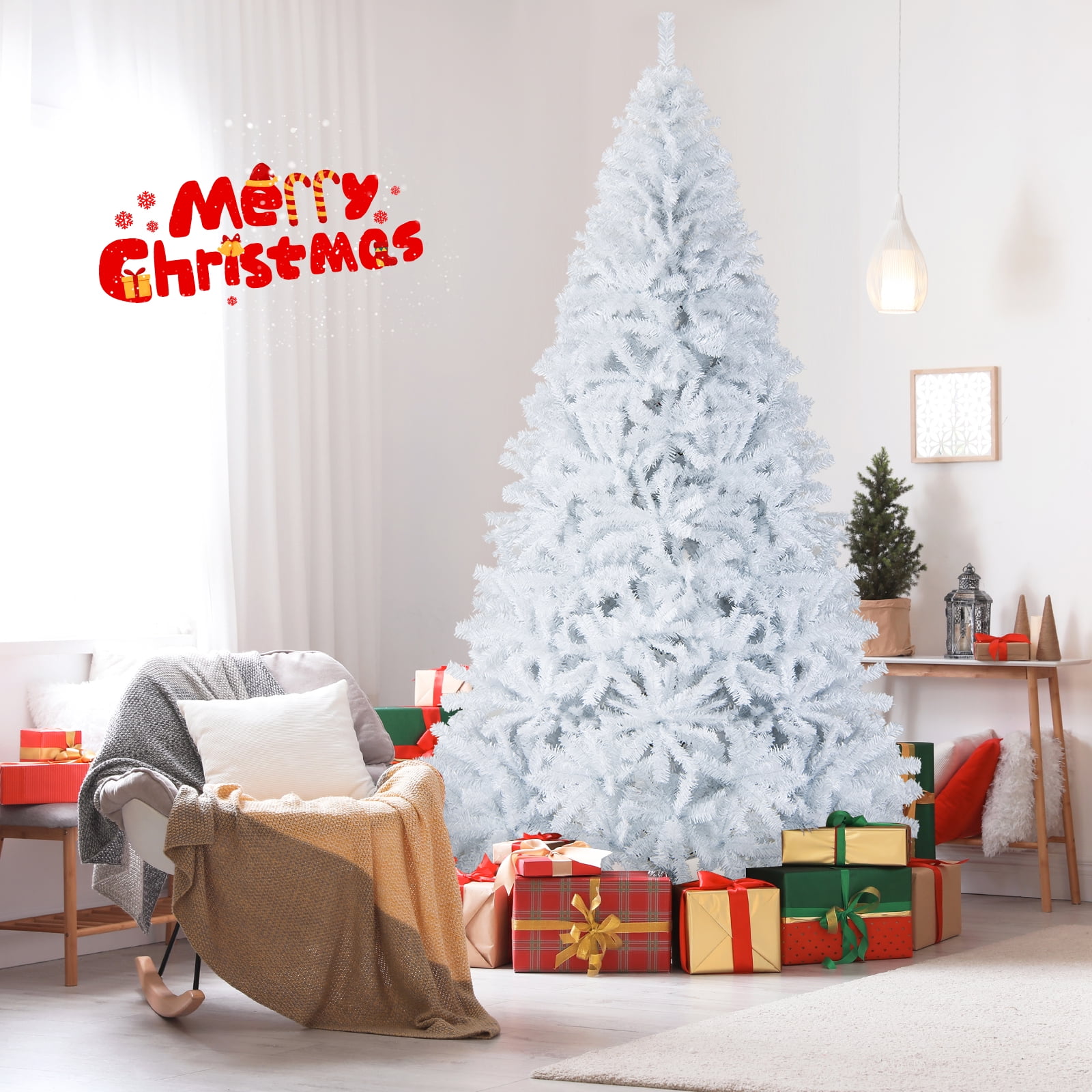Costway 9Ft Hinged Artificial Christmas Tree Pine Tree with 2132 Branch Tips and Metal Stand White CM22102