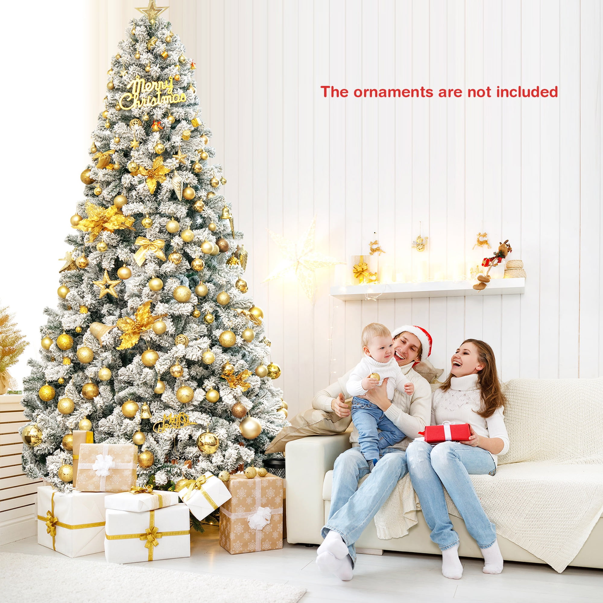 Costway 9ft Snow Flocked Hinged Artificial Christmas Tree Unlit Metal