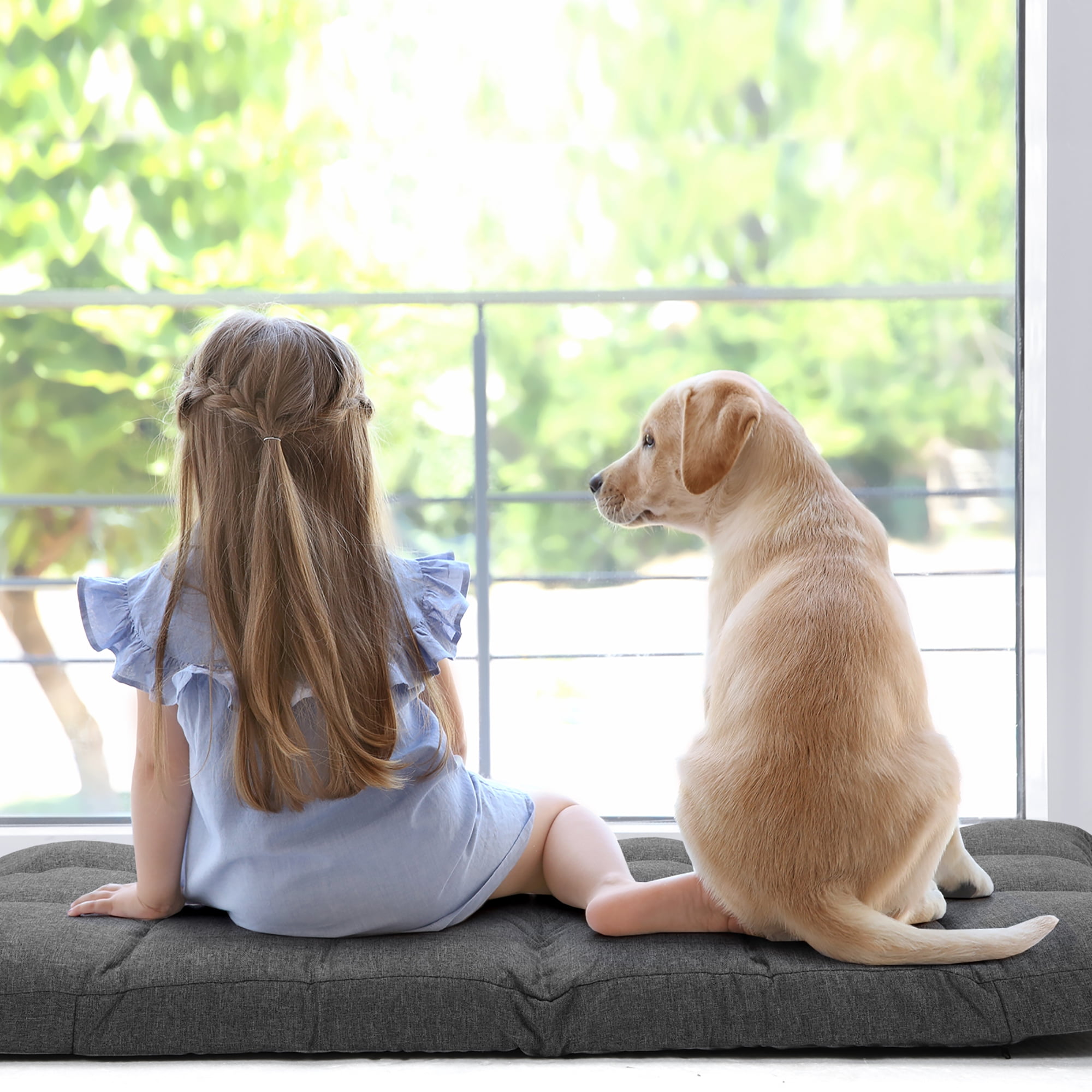Our comfort chair will give you the comfort you expect anywhere. This floor chair can be easily adjusted to 14 different positions and quickly adjusted to your favorite position. Besides, you can stow it flat in a narrow space when not in use. Thickened sponge combined with good breathable cotton and linen fabric, it can provide you with extra ordinary comfort and ultimate enjoyment. As a seat or recliner, the solid steel structure can offer strong back support and reduce back pressure. In addition, it has a good load-bearing capacity of 264 pounds but its light weight is easy to carry. It will be ideal for use while playing games or relaxing with a captivating read in hand and so on. Feature 14-position adjustment for most comfortable angle and easy storage High resilience sponge padding brings long-term comfort Made of breathable cotton and linen fabric, keep away from stuffiness Sturdy steel frame provides great support for your waist The backrest is ergonomically designed to effectively relieve body fatigue Lightweight design, convenient to transport Suitable for scenes: study, bedroom, living room, office, etc Specification Color: Gray Material: Cotton and Linen Fabric, Steel Dimension: 42”x21”x4”(LxWxH) Net Weight: 9.5 lbs Weight Capacity: 264 lbs Package Includes: 1 x Floor Chair