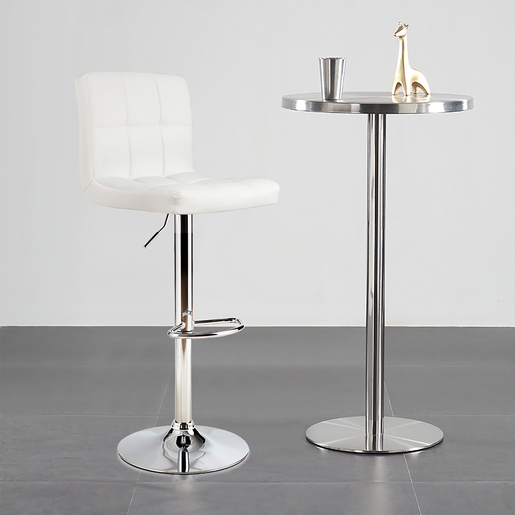 The kitchen counter adjustable bar stool will provide you with comfortable sitting experience, long-lasting service time and reliable support. Benefitting from upgraded metal lift lever, you can easily adjust height at will without much effort. Thickened and elastic sponge filled in the cushioned seat is soft so that you can sit on the bar stool for long time while feeling less fatigue. Compared with other ordinary bar stool, the 360degree swivel adjustable chair with backrest can extremely improve comfort and bring much more fun to you. Meanwhile, sturdy frame ensures superior durability and sturdiness to support you firmly. Plus, rubber ring on the bottom can not only protect floor during moving but also enhance stability in stationary. Feature Can be adjusted by means of upgraded metal handle to your desired height 360degree Rotation function makes it convenient to relax your tired body Cushioned seat filled with high resilience sponge for higher comfort Premium PU leather, breathable, soft and durable Backrest relieves pressure exerted to lumbar spine Footrest allows feet to have a comfortable rest Ultra wide circular base enhances stability Bottom rubber ring protect floor from scratching Suitable for kitchen, living room, study room, pub, restaurant, etc Specification Color: White Material: PU, Sponge, Iron Dimension: 16″X16″X38″–46″ (LXWXH) Net Weight: 34.5 lbs Weight Capacity: 330 lbs Package Includes: 1 X Barstool