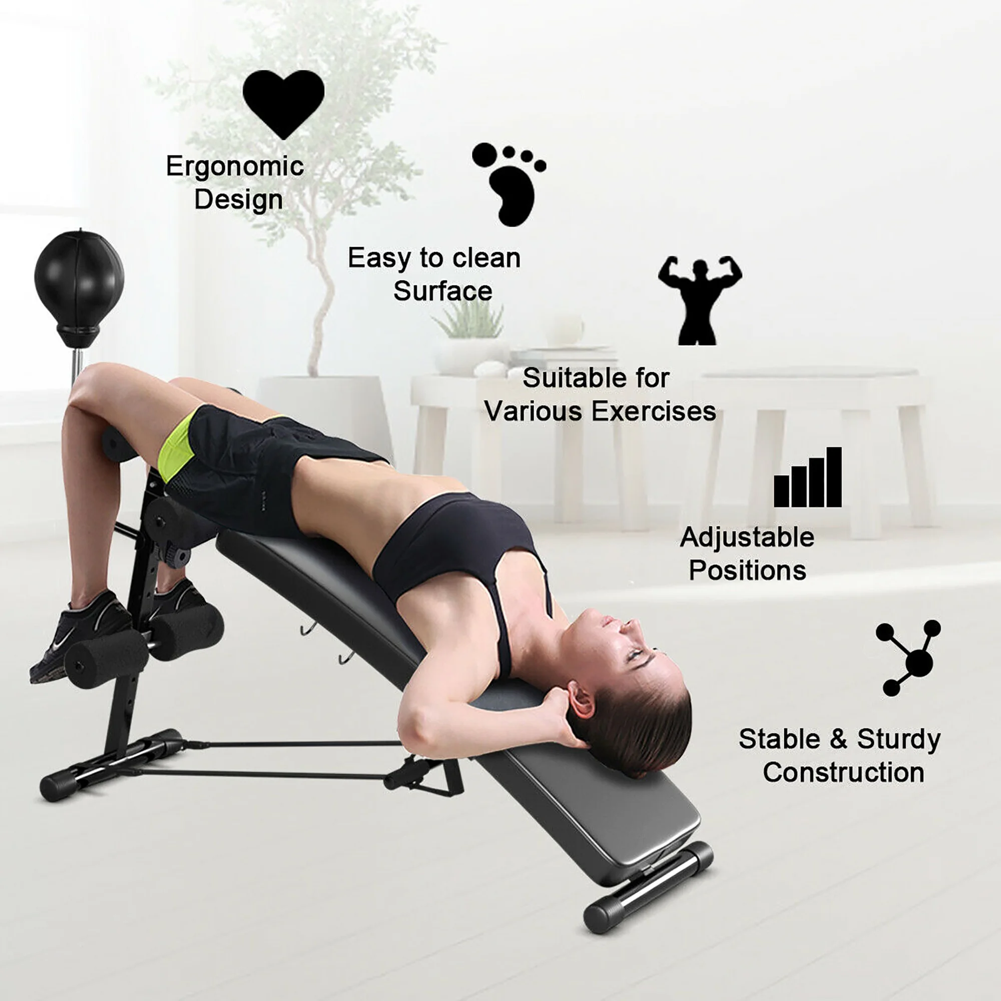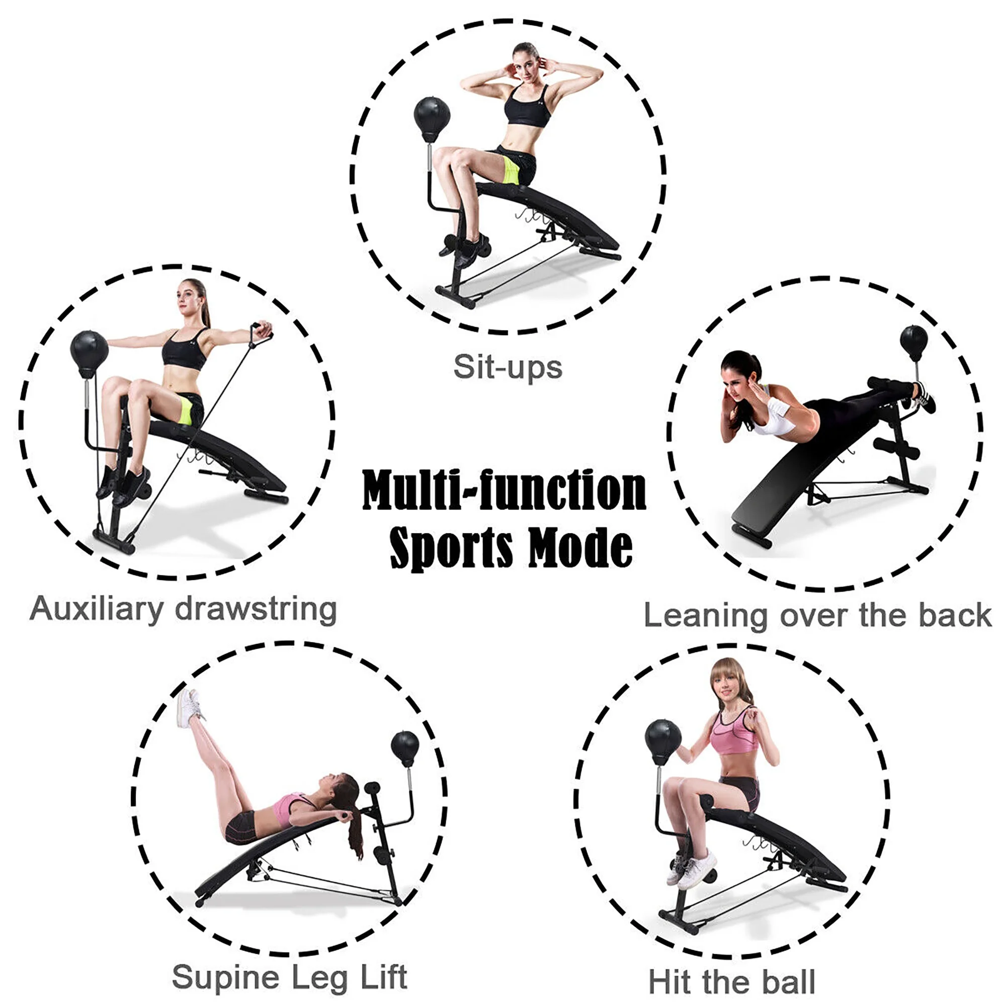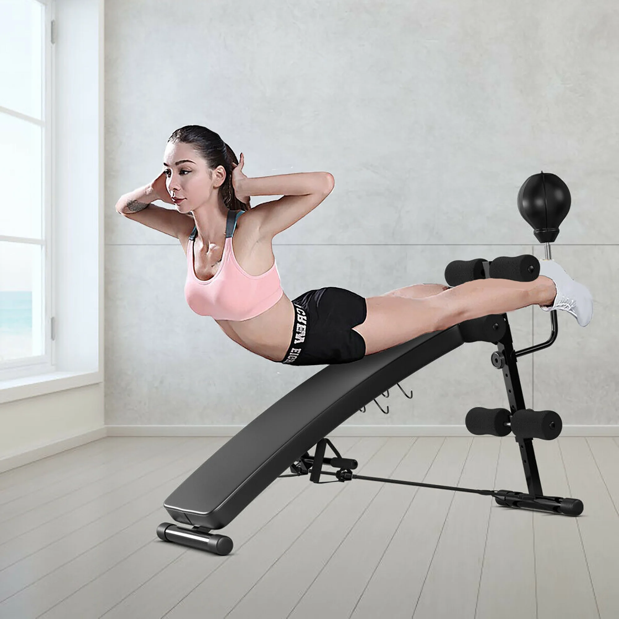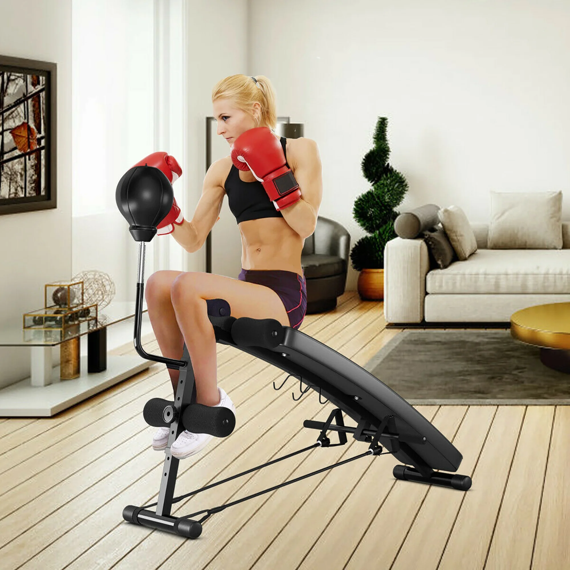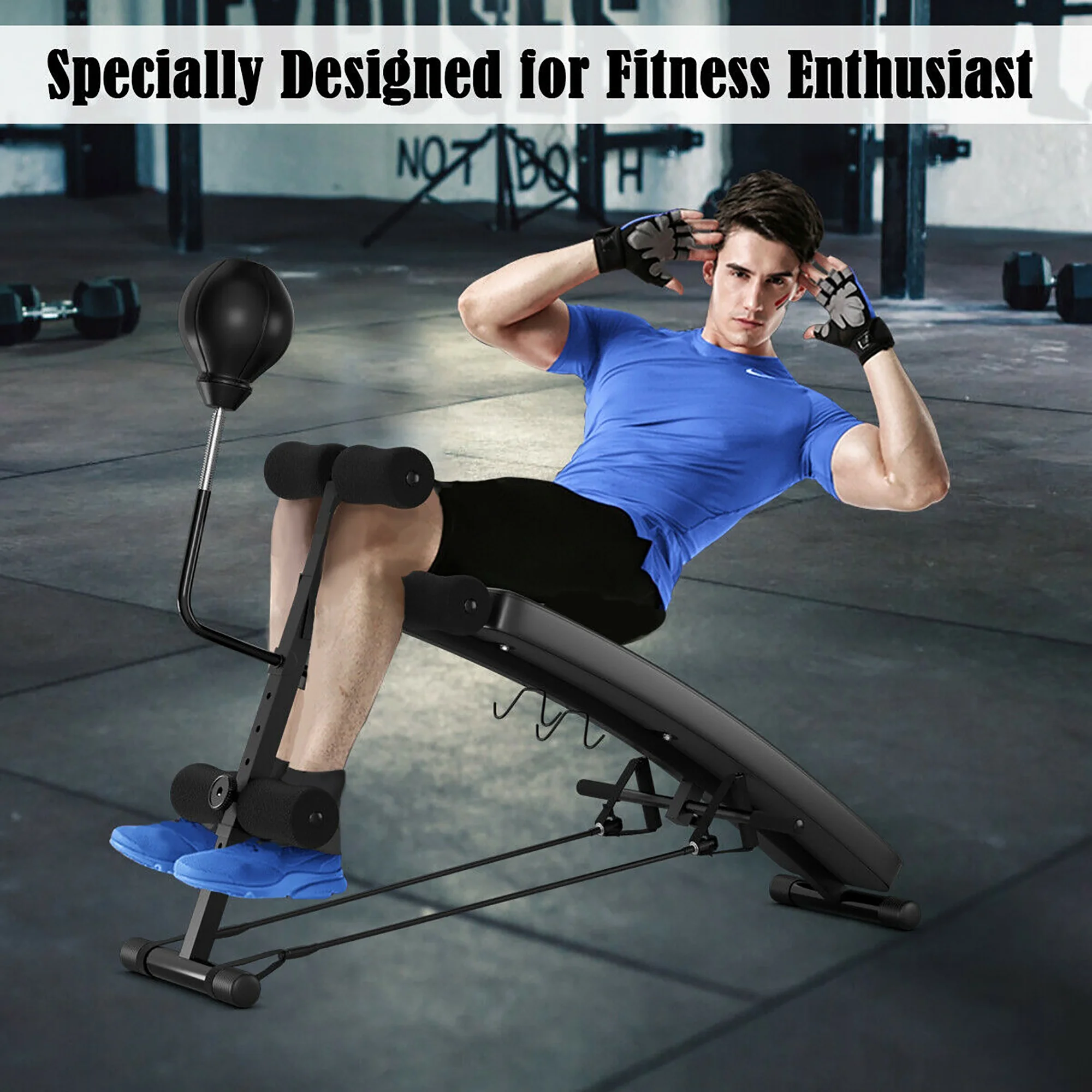 Costway Adjustable Incline Curved Workout Fitness Sit Up Bench with Speed Ball 2 straps