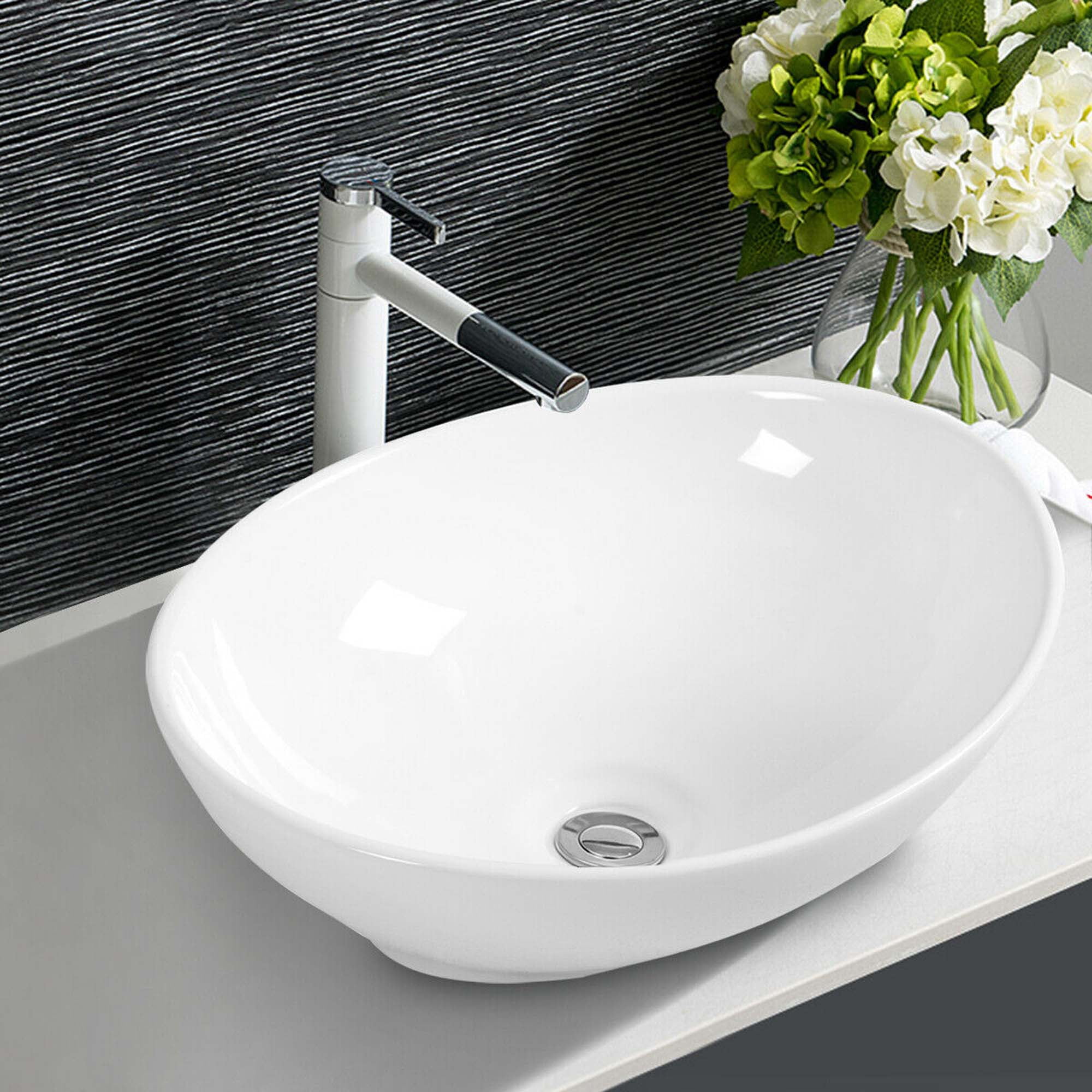 Costway BA7146 White Ceramic 13 x 5.50 Inch Oval Single Bowl Sink Made of high-quality ceramic, rugged and durable Contemporary oval design without overflow Featuring popup drain design for easy water storage and drainage Overall dimensions: 16″L x 13″W x 5.5″Deep Ideal for both home and commercial use Note: Faucet is not included