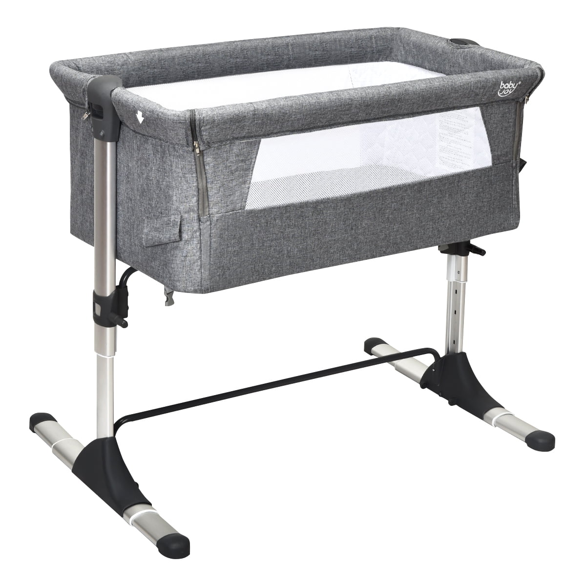 Are you tired of another sleepless night with your baby? Our bed side crib has 4 adjustable heights and tilting features to suit your different needs. Zero inclined angle which is under 10 degrees is helpful for parents. Moreover, the detachable sidebar can make parents and children interact even better. It can be easily attached to the parent’s bed, allowing parents to stay close to their little ones. It is sturdy and sturdy enough to ensure your baby’s safety and security. The detachable mattress is made of high-quality fabric and filled with high-density sponge, bringing a comfortable and safe sleeping environment for your kids. It comes with a carrying bag allowing you to take it with you anywhere you go. This crib can solve all the troubles and give you and your baby a comfortable sleeping experience. Choose our baby and choose a good night’s sleep! Feature 0° inclined bassinet that is under 10 degrees, meeting the requirements of a qualified sleeper and ensuring the safety of the baby A detachable sidebar and two fixed ropes allow it to be easily attached to the parents’ bed. Bedside crib is good for taking care of kids at night and improving their sleep quality. Retractable feet make it easy to place beside the bed and the sofa. 4 adjustable heights to meet the different needs of parents. The two-side mesh allows you to keep an eye on your baby while have good air circulation. The comfortable and detachable mattress will protect the baby’s spine. Detachable and washable linen cloth for easy maintenance Stable bottom support makes the whole structure more sturdy and sturdier. Lightweight design and the carry bag allow you to relocate it with ease. Specification Color: Grey Material: Iron + Aluminum + Linen Fabric + Sponge +Oxford Cloth +MDF Board Overall Size: 38” x 19.5”-27.5” x 26.5”-34” (L x W x H) Carrying Bag Size: 37.5” x 6” x 19.5” (L x W x H) Adjustable Height: 26.5”, 29”, 31.5”, 34” Net Weight: 17lbs Applicable Age: 0-6 Months Weight Capacity: 20 lbs Package Includes: 1x Bed Side Crib 1x Carry Bag 2x Fixed Rope 1x User’s Manual