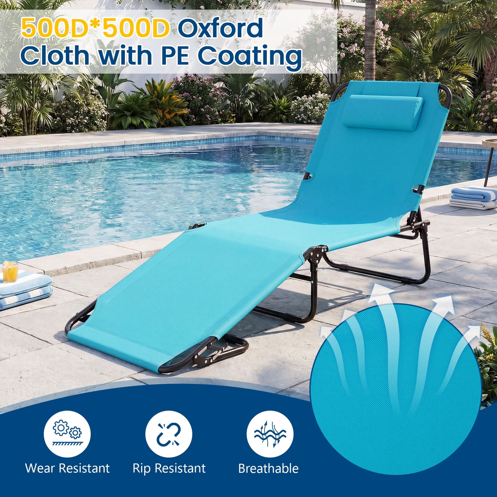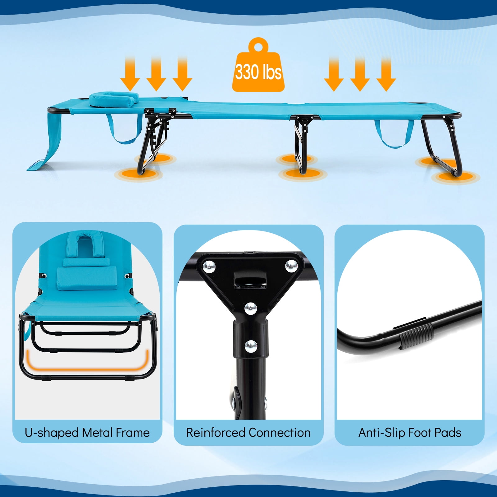 Costway Beach Chaise Lounge Chair with Face Hole Pillows & 4-Position Adjustable Backrest Turquoise