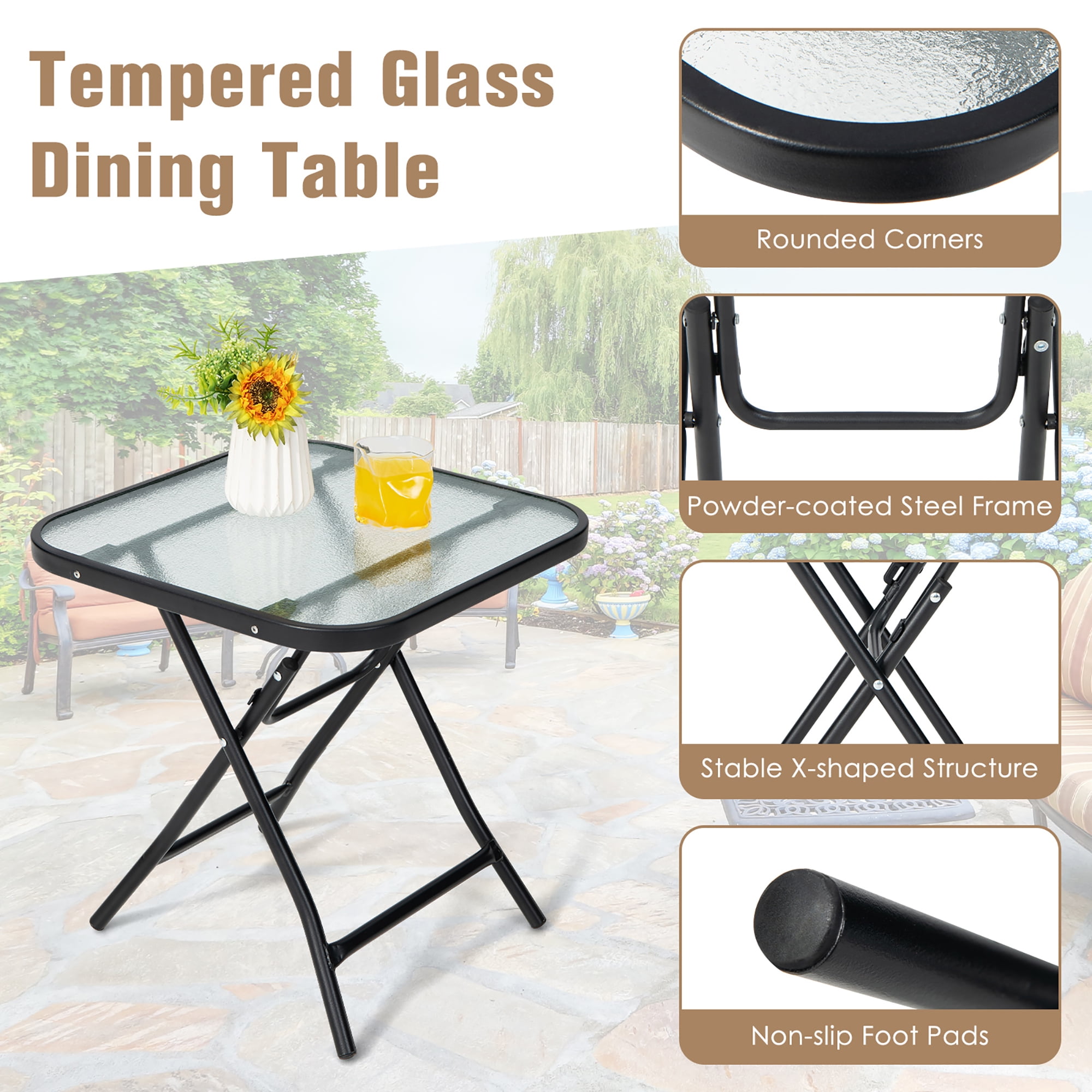 Costway Black Square Metal Folding Glass Side Table Outdoor Bistro Table