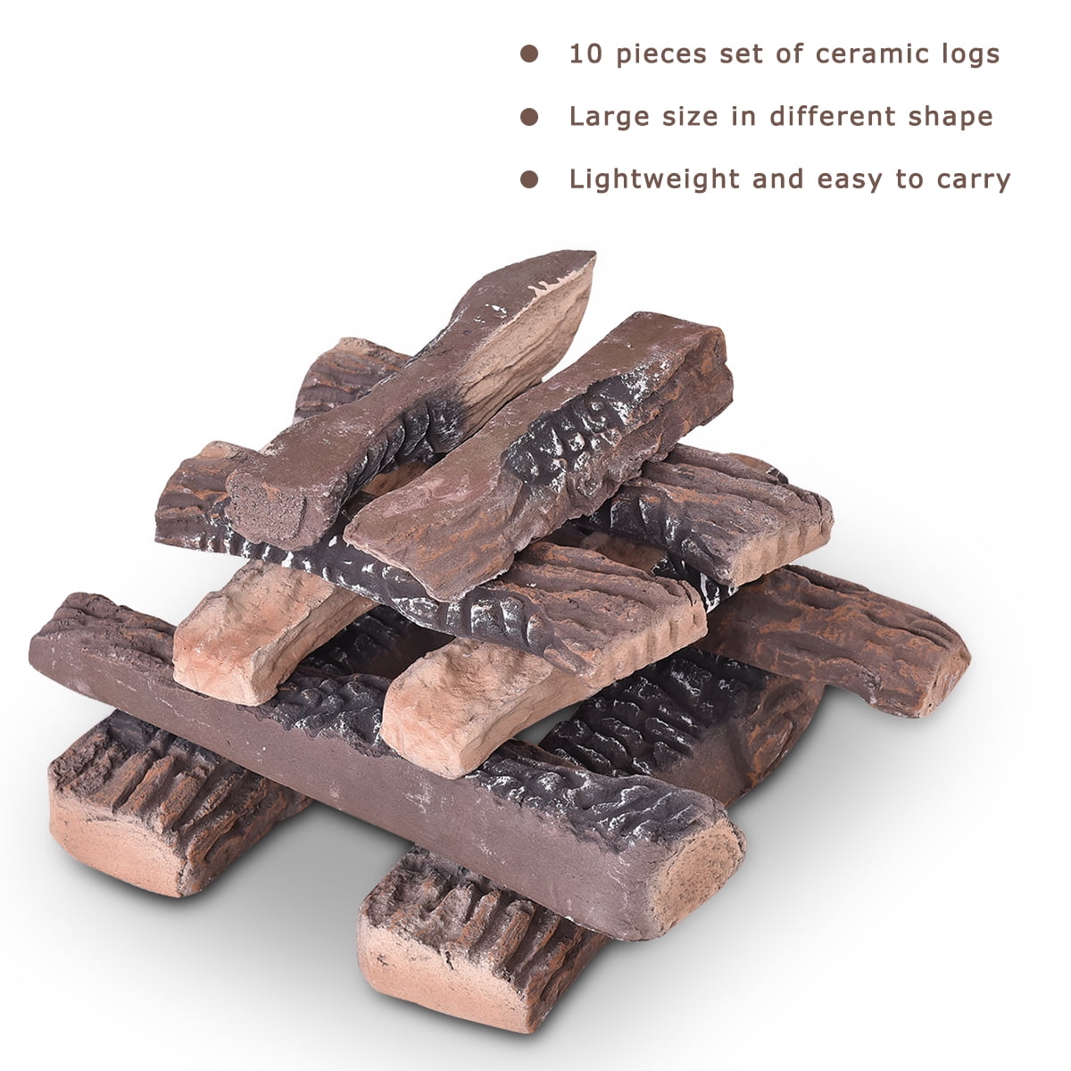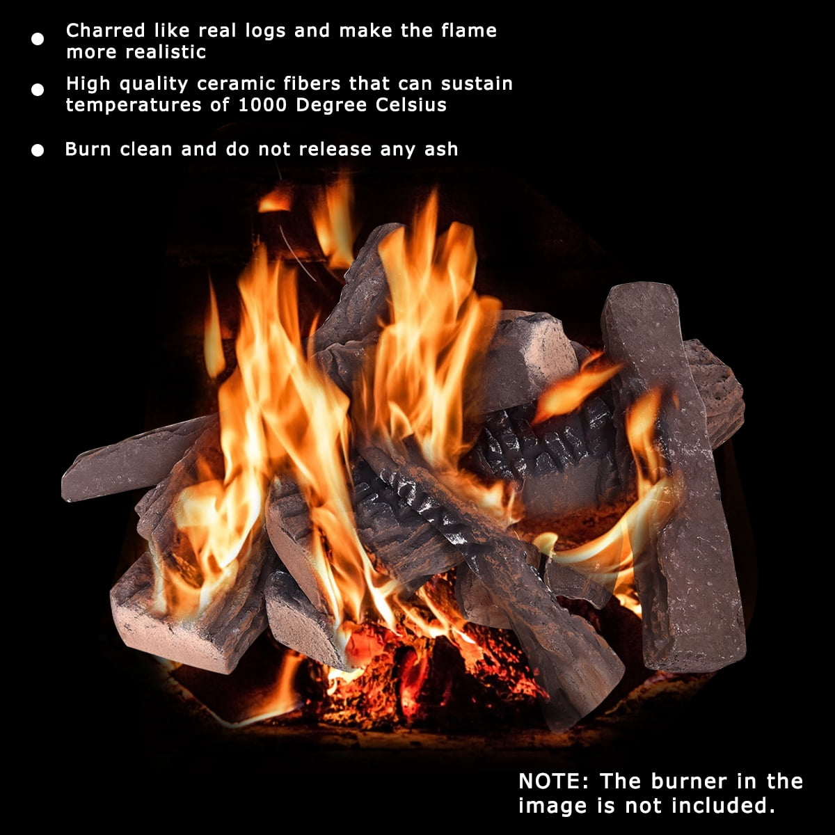 This extremely realistic Ceramic Wood Gas Logs set is a great promotion to your electric, gas, propane, ventless, vented, fireplace or fire pit. They are designed of finest quality light weight ceramic fibers that can sustain temperatures of 1000 Degree Celsius and will not scratch or harm the surface of the fireplace, also, it do not release any ash ,poison gas or residue into the air. These gas logs are a great addition to gas logs, rock wood, glowing embers, fireplace or fire pit glass or lava rocks. Each log has been carefully sculpted to perfection to imitate the true beauty of wood figure .Set these logs up any way you’d like. Their realistic look and large size allow you the option of arranging them in your own way and still having the look of a real, full fire. It will be your excellent choice to buy. Don’t hesitate to buy it now! Feature High Quality Including 10 ceramic wood logs, Two 15”, Two 16”, Two11” and Two 10” Two 12” Perfect For All Types Of Fireplaces including Ventless gas fireplace, Outdoor gas fireplaces, indoor gas fireplaces, direct vent, zero clearance, natural gas, gel, standard fire pits, fake fireplaces, electric fireplace inserts, vent free fireplaces, propane fireplaces, propane fire pits, ethanol fireplaces, gel fireplaces, and firepits ExTREMELY REALISTIC: These ceramic fiber gas logs look just like real fireplace wood logs when they are in the fire. You will even see some orange/red hot spots under the logs while burning. Large enough for your fire place or fire pit Keep your family and home safe from any toxic fumes Specification Material: Ceramic Color: original wood figure Net weight: 6.2Lbs Dimension: 2*16”x4”x3” 2*15”x4”x2” 2*11”x3”x2” 2*10”x3”x2” 2*12”x3”x2” Package include: 2PC 16”x4”x3” ceramic log 2PC 15”x4”x2” ceramic log 2PC 11”x3”x2” ceramic log 2PC 10”x3”x2” ceramic log 2PC 12”x3”x2” ceramic log
