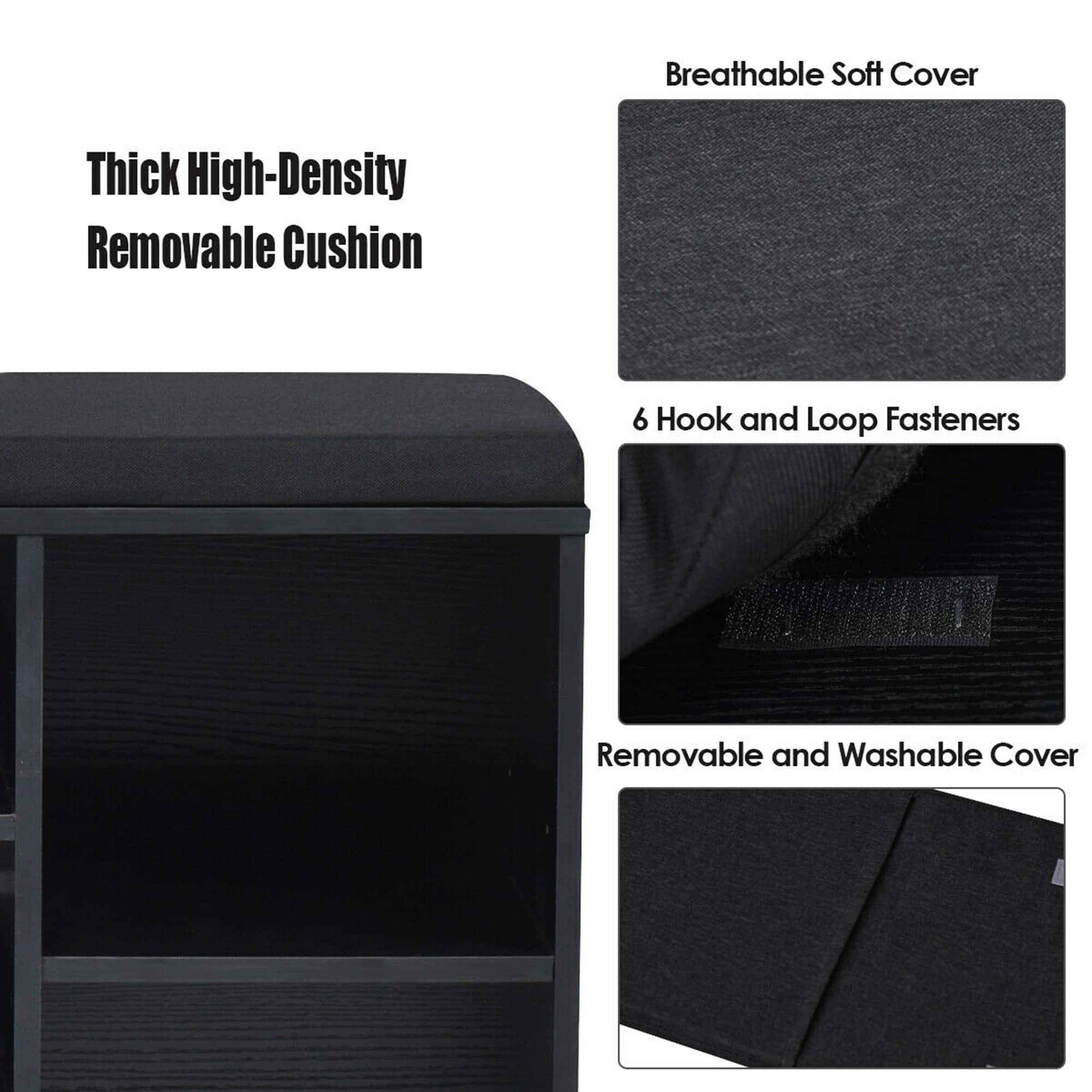 - Product Name: Entryway Padded Shoe Storage Bench 10-Cube Organizer Bench Adjustable Black