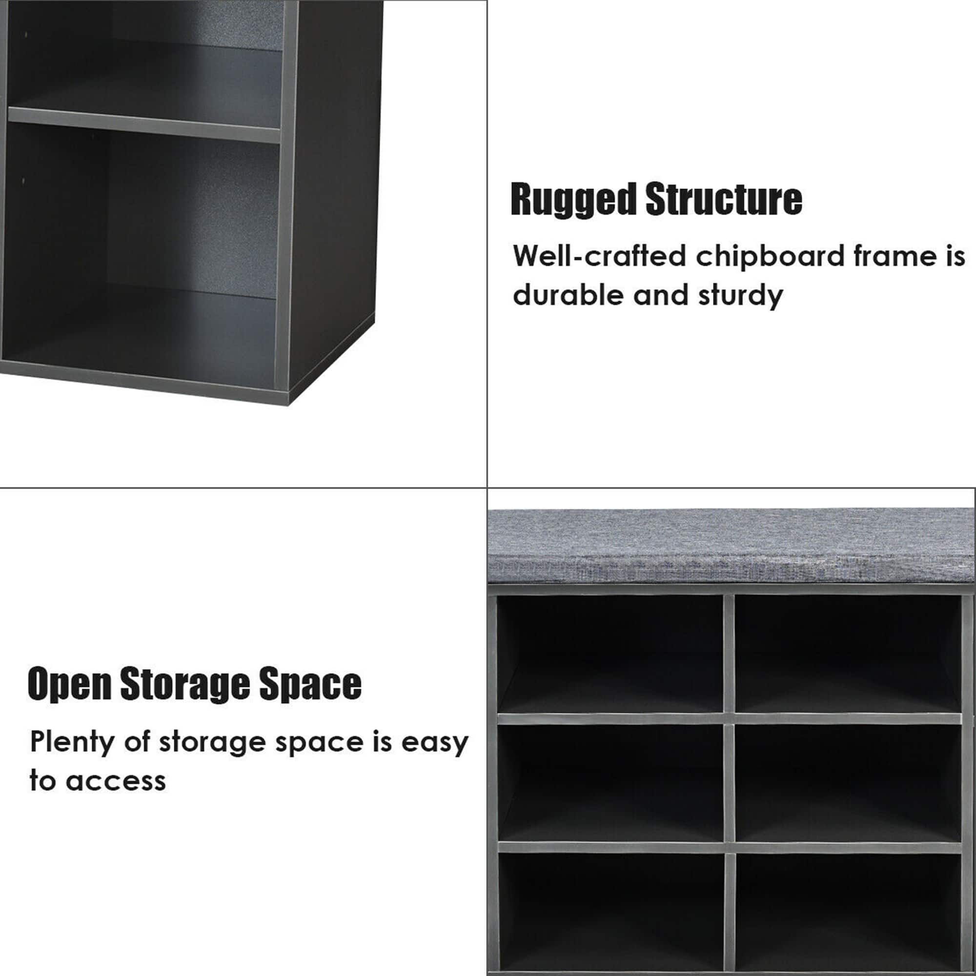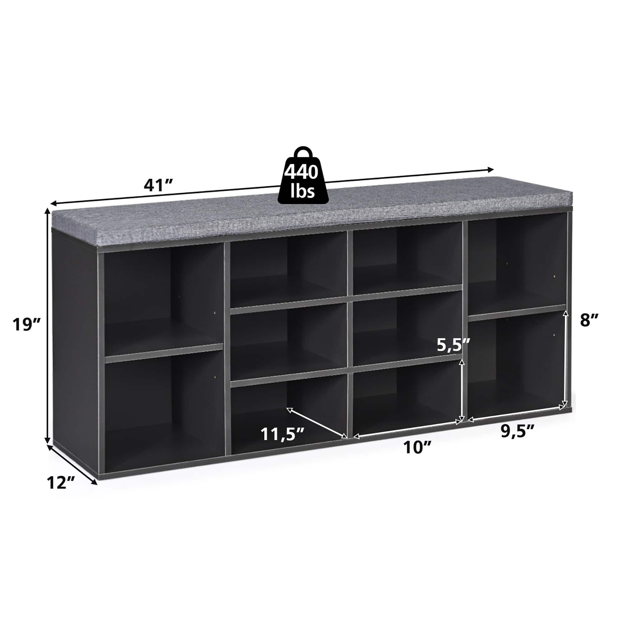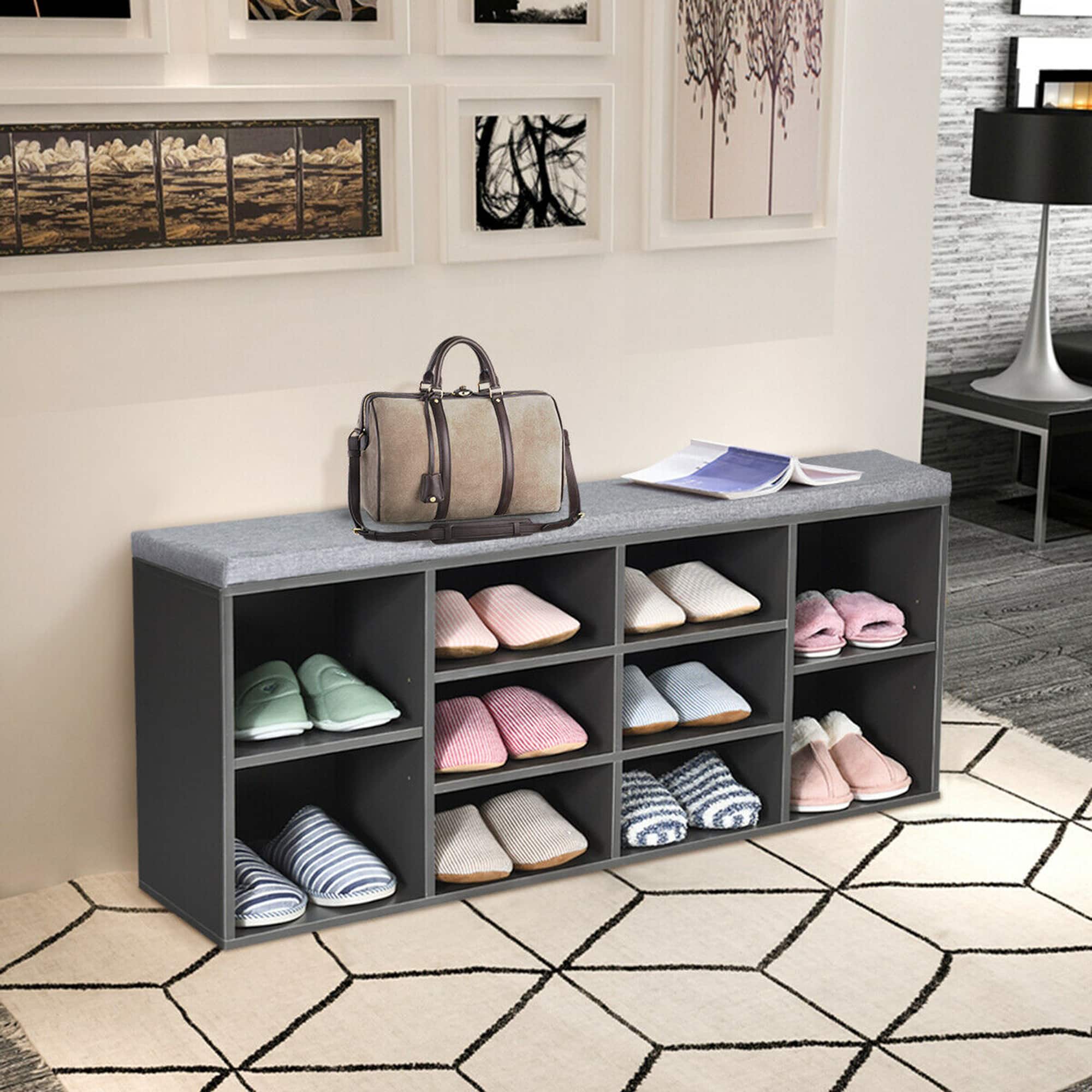 - Product Name: Entryway Padded Shoe Storage Bench 10-Cube Organizer Bench Adjustable Grey